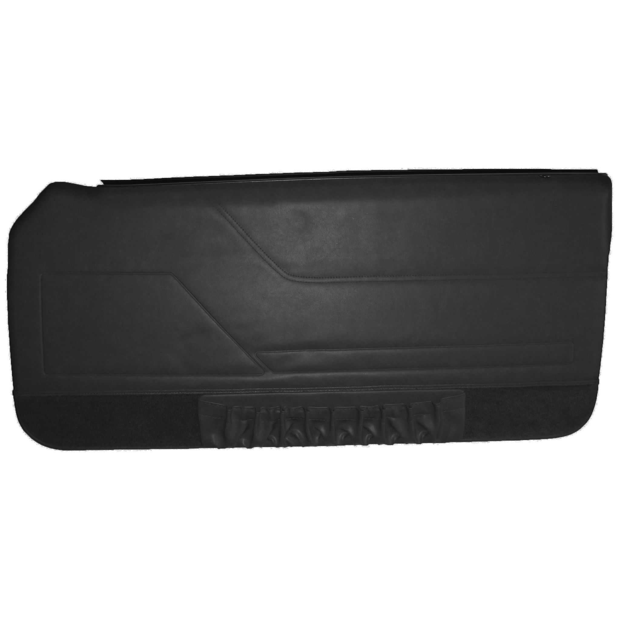 This Ford Mustang Door Panel set is a high-quality product following the factory pleat design, sewing pattern and factory attachment points. This set has carpet on the lower section of both panels and a Map Pocket on the drivers side only. Includes inner window felts, lock ferrules and fasteners.