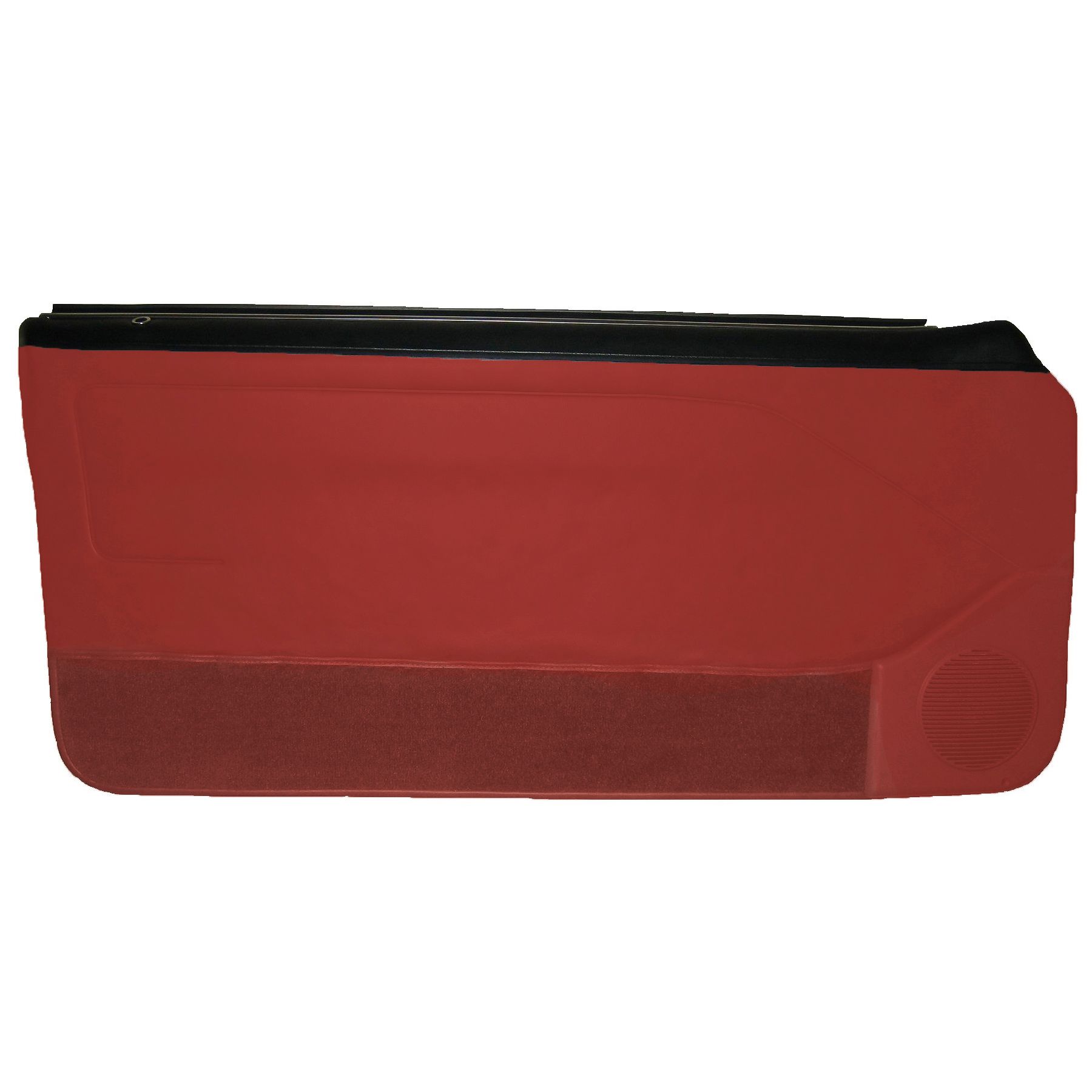 This Ford Mustang Door Panel set is a high-quality product following the factory pleat design, sewing pattern and factory attachment points. This set has carpet on the lower section of both panels and no Map Pockets. This will fit Convertibles built 1/1987-10/1987. Includes inner window felts, lock ferrules and fasteners.
