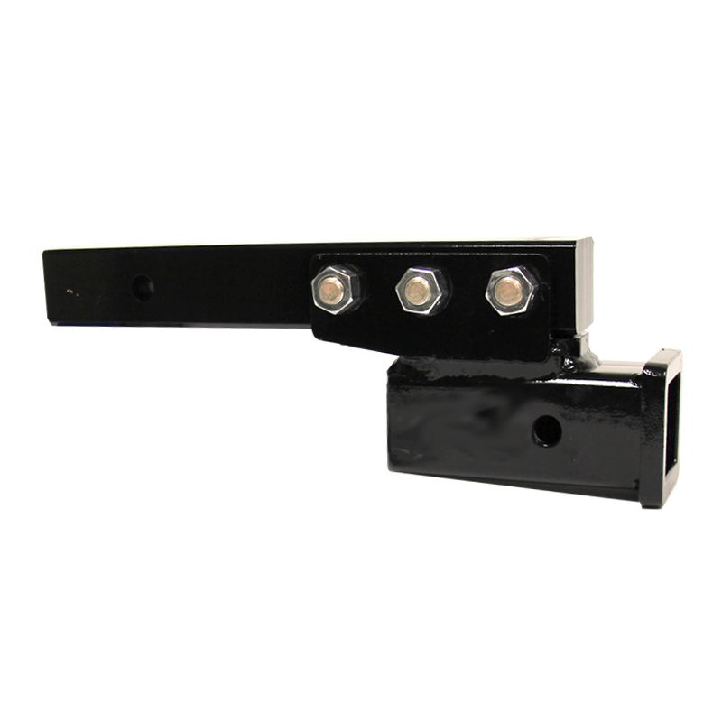 Lower or raise your receiver connection to allow the tow bar to be level when towing. Slide the drop receiver into the receiver hitch, insert 5/8 in. pin through receiver, and insert clip into pin.