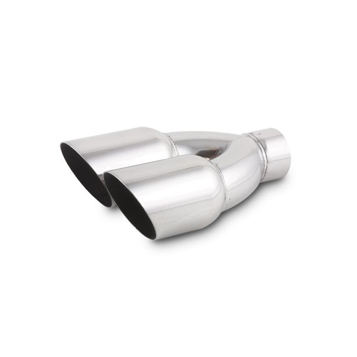Vibrant Performance Dual Outlet, Weld-On Exhaust Tips are manufactured from 304 Stainless Steel for optimum corrosion resistance. They are available with either dual round or dual oval outlets and a variety of different outlet edge profiles. All Vibrant Performance dual outlet tips are 10 long and are offered with inlet diameters ranging from 2.25 to 2.5.