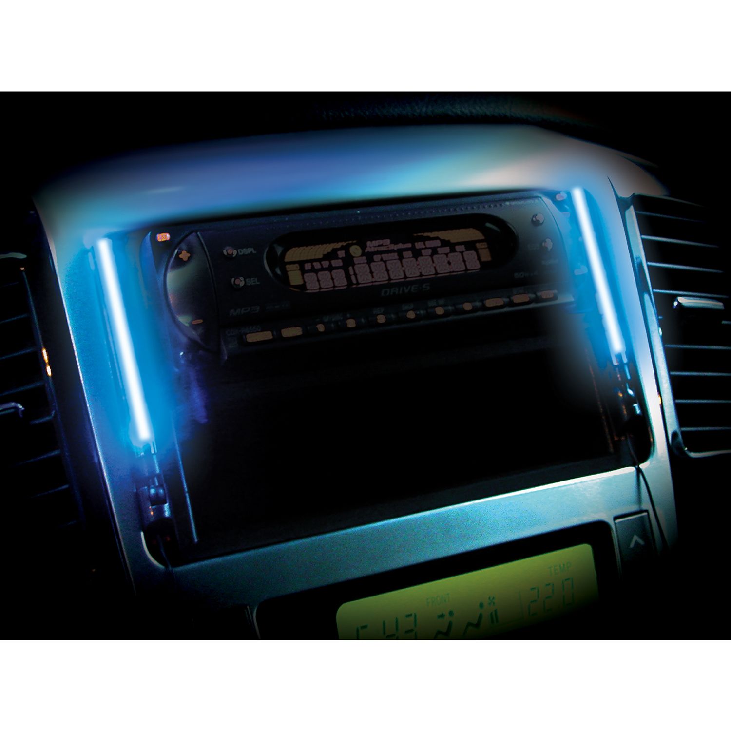 Type S dual dash mood light with blue LED light by Winplus allows you to Accentuate and illuminate your cars interior with two soft blue LED lights. Simply mount each piece on either side of the dash area or on any clean and smooth surface. Once attached adjust the hinged arms to your desired locations and plug in 12 V adapter.