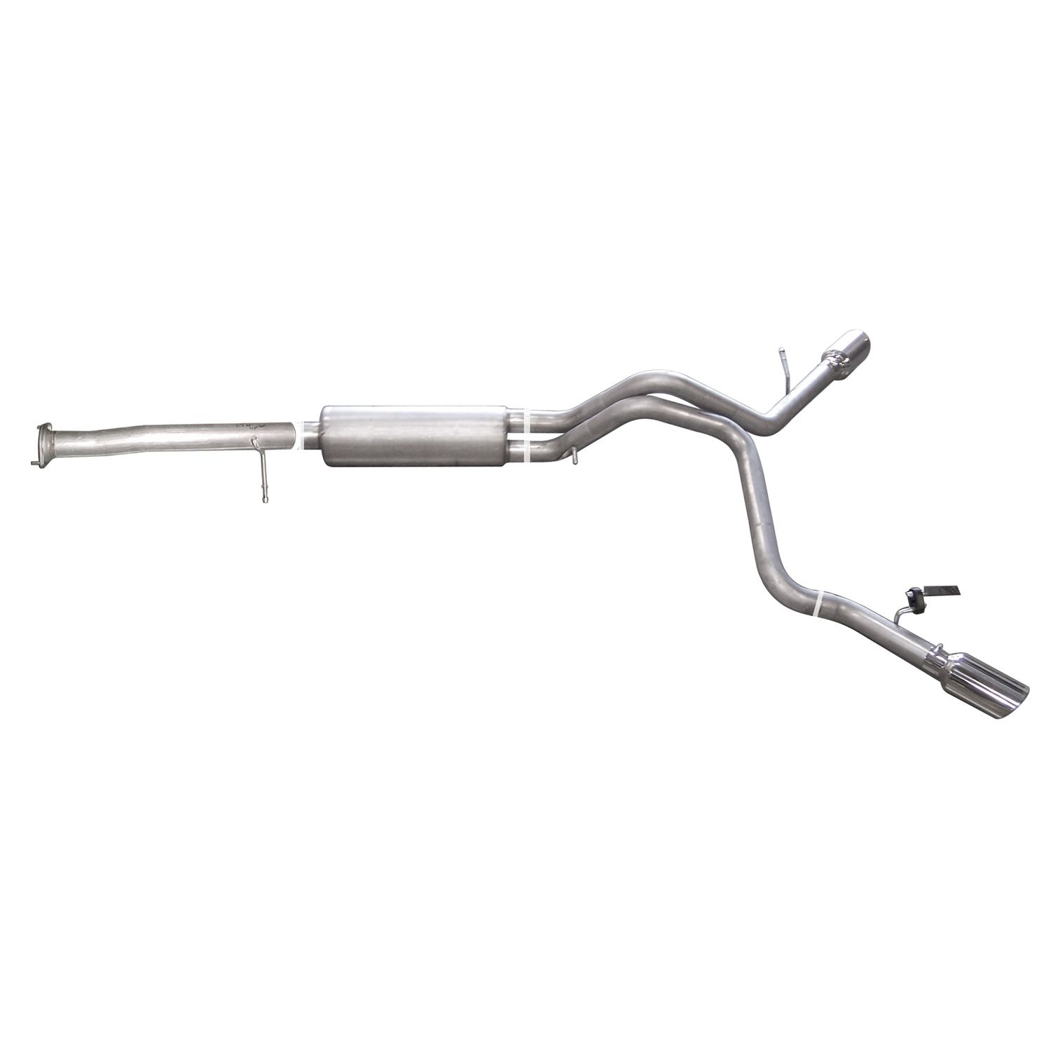 For the extremist who wants to take their truck to the next level, this dual bolt-on Cat back system is for you. This system exists behind the rear tires at an aggressive angle with a powerful exhaust tone. You will gain bold street looks with powerful dyno tuned and tested street performance gains. You can expect to experience gains on average of 15-20 horsepower. Gibson muffler provides a mean performance sound and complemented with polished Stainless Tip. Easy bolt-on installation. No welding required. Backed by a Lifetime Limited Warranty. If you want Extreme, this system is it.