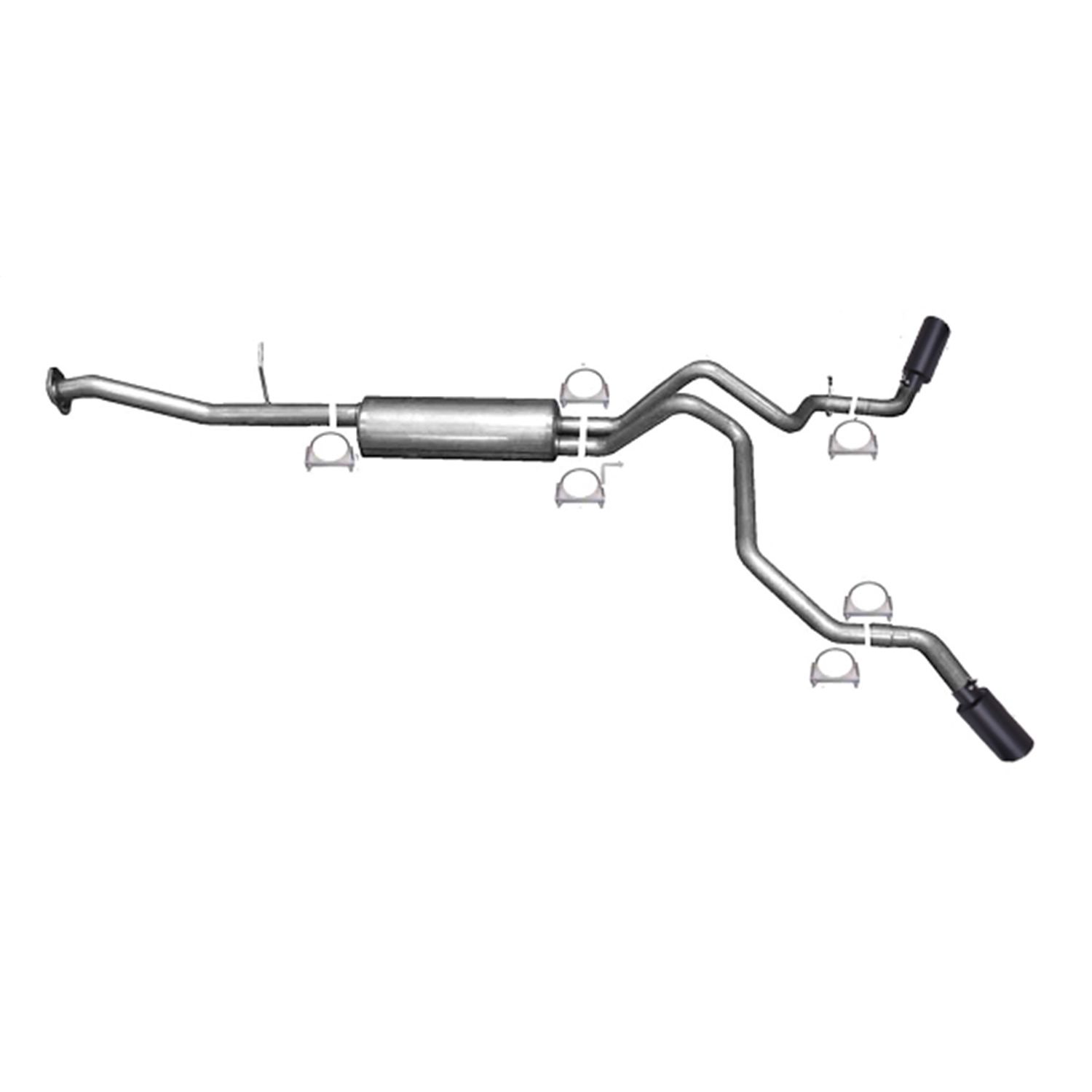 For the extremist who wants to take their truck to the next level, this Black Elite dual bolt-on Cat back system is for you. This system exists behind the rear tires at an aggressive angle with a powerful exhaust tone. Each T-304 stainless tip is offered with a premium black finish applied with Gibson's formulated process exclusive only to the Black Elite Series You will gain bold street looks with dyno tuned and tested street performance gains. For increased Performance, this exhaust system pushes the sound through our proven stainless steel Superflow Muffler giving you a vigorous deep tone. It's manufactured with high quality stainless steel tubing and backed by a limited lifetime warranty. With this perfect combination, Gibson Performance exceeds expectations with the ability to offer quality and style while being Made in the USA.