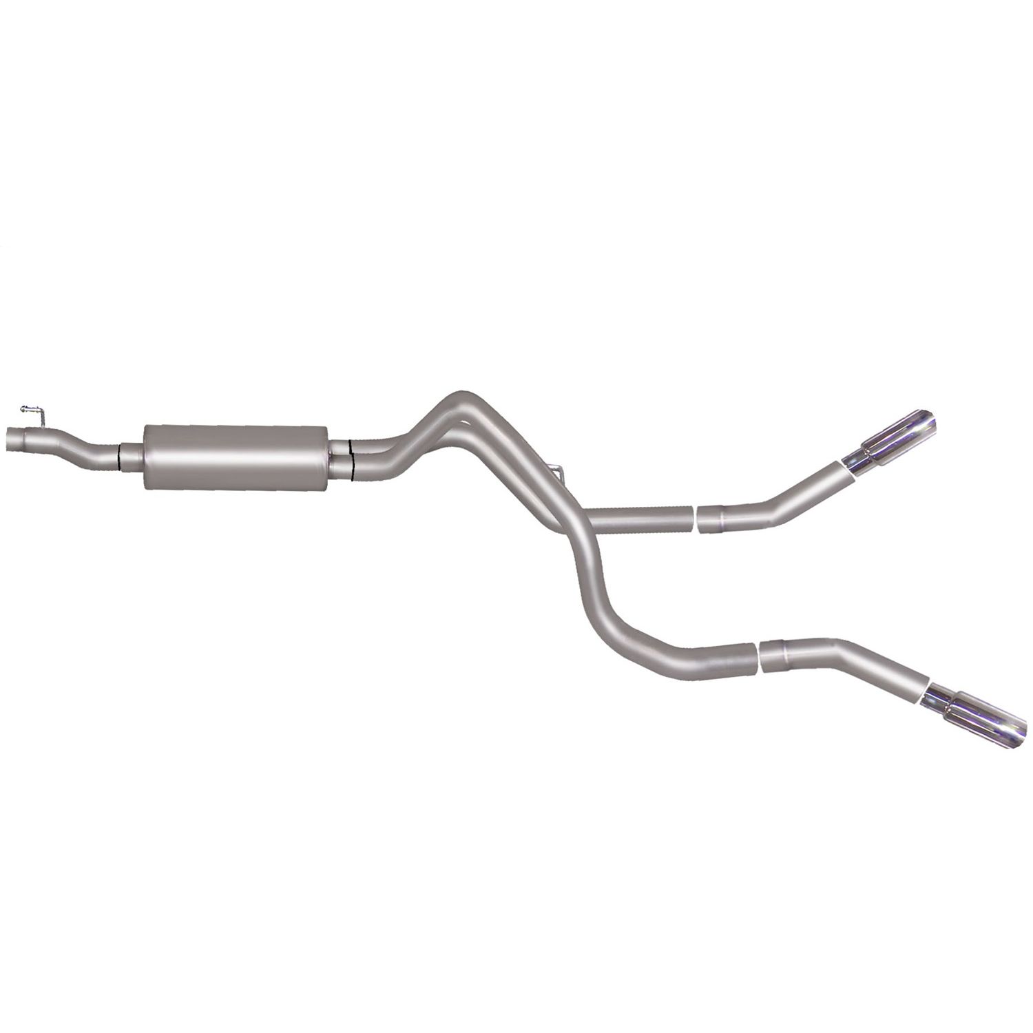 For the extremist who wants to take their truck to the next level, this dual bolt-on Cat back system is for you. This system exists behind the rear tires at an aggressive angle with a powerful exhaust tone. You will gain bold street looks with powerful dyno tuned and tested street performance gains. You can expect to experience gains on average of 15-20 horsepower. Gibson muffler provides a mean performance sound and complemented with polished Stainless Tip. Easy bolt-on installation. No welding required. Backed by a Lifetime Limited Warranty. If you want Extreme, this system is it.