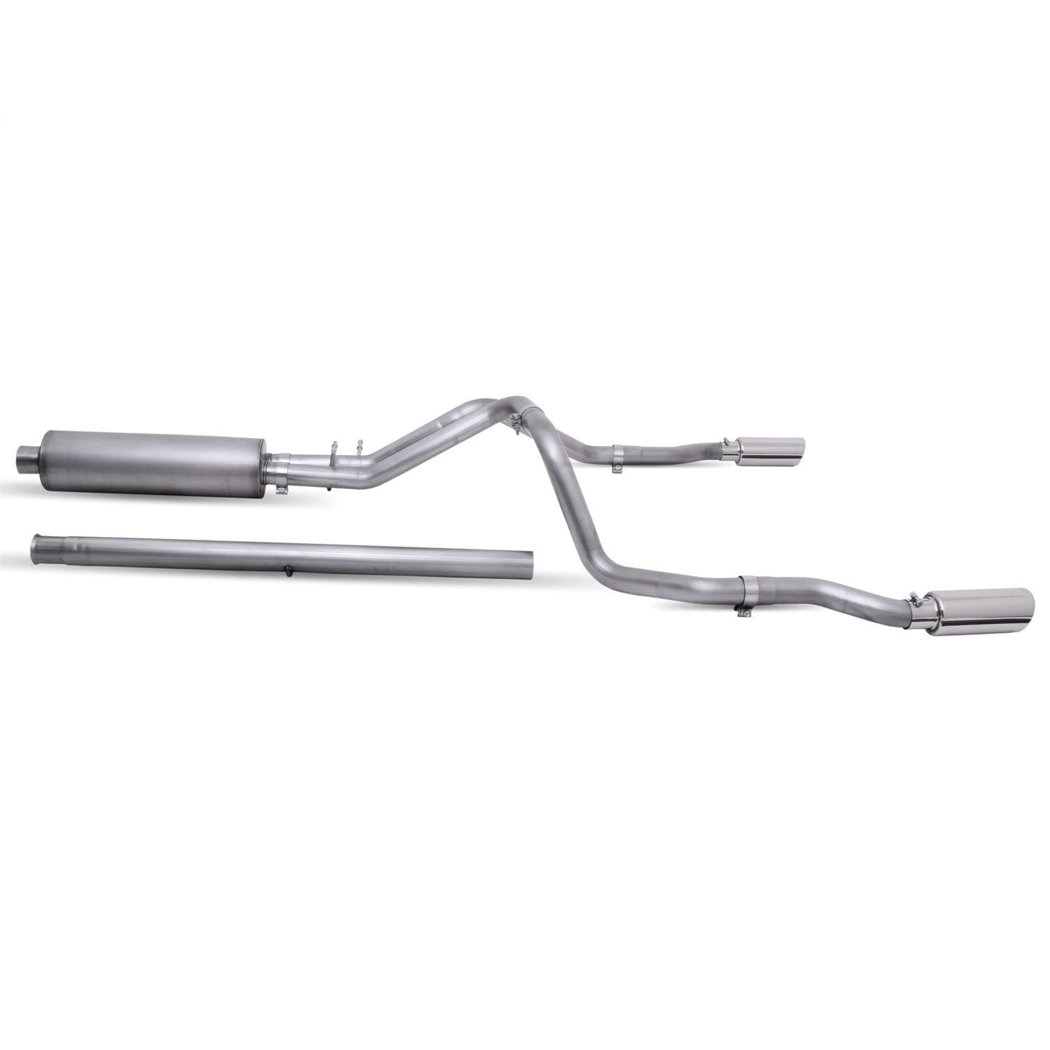 Made to last the new Chevy Silverado Gibson Exhaust Dual Split Rear Cat-Back System is here. For the enthusiast who wants an awesome look and aggressive throaty sound this Dual Split Cat back exhaust is for you. Gibson Exhaust Systems decrease backpressure and produce more torque and increased horsepower. Typical gains average of 18-20 horsepower. 4.0 in. Rolled Stainless Tips exit straight out the back. Works with most bumpers, roll pans and trailer hitches. Exhaust sound is louder under towing conditions. Easy bolt-on installation. No welding required. Includes stainless band clamps. Backed by a Lifetime Limited Warranty.