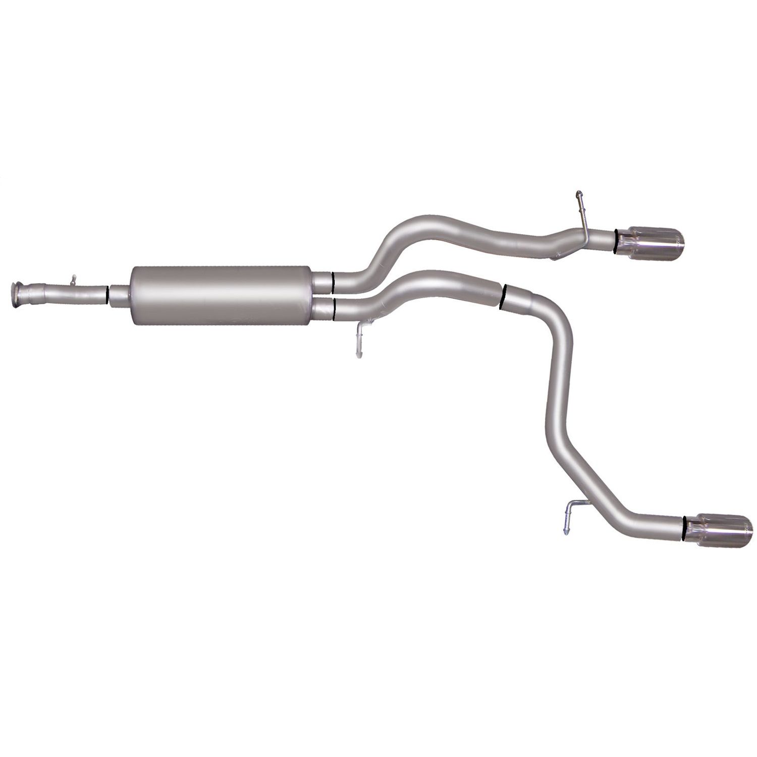 For the enthusiast who wants an awesome look and aggressive throaty sound this Dual Split Cat back exhaust is for you. Gibson Exhaust Systems decrease backpressure and produce more torque and increased horsepower. Typical gains average of 15-20 horsepower. Stainless dual Tip exit straight out the back. Works with most bumpers, roll pans and trailer hitches. Exhaust sound is louder under towing conditions. Hassle Free bolt- on installation. No welding required. Backed by a Lifetime Limited Warranty.