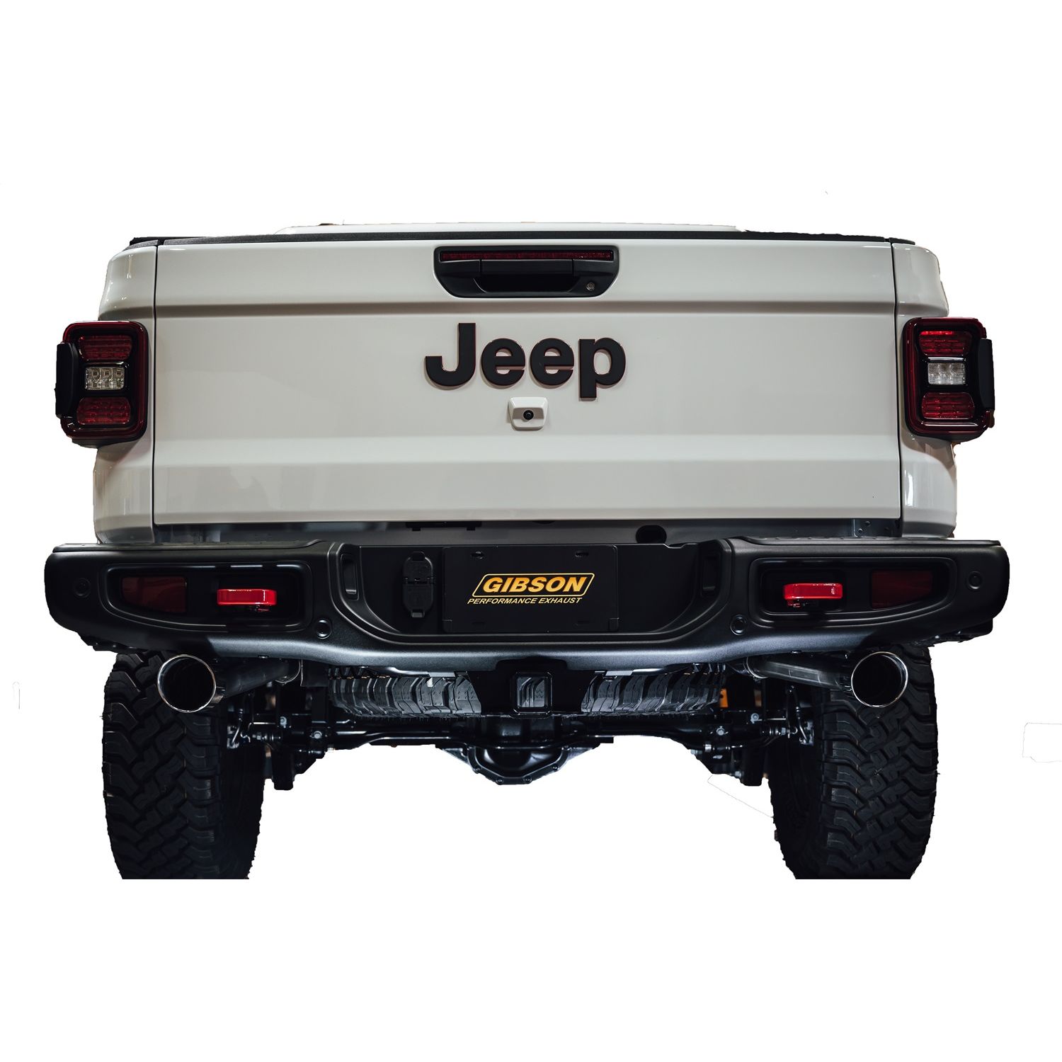 Jeep and all of its enthusiast have gone to the next level. Gibson has designed an exhaust system for the brand new Jeep Gladiator that brings you custom adjustability. Highlighting adjustability Jeep owners love to customize their bumpers, having this adjustability brings countless options. This Dual Split Rear exhaust features 2.5- in. mandrel bent tubing bringing that extra low end power and torque. With a Gibson non-packed muffler, you can be guaranteed a consistent level of sound and performance quality for the duration of your vehicle. Complemented with two 4- in. polished Stainless Tips. Hassle free, bolt-on installation with professional looking results. Backed by a Lifetime Limited Warranty and Made in the USA.