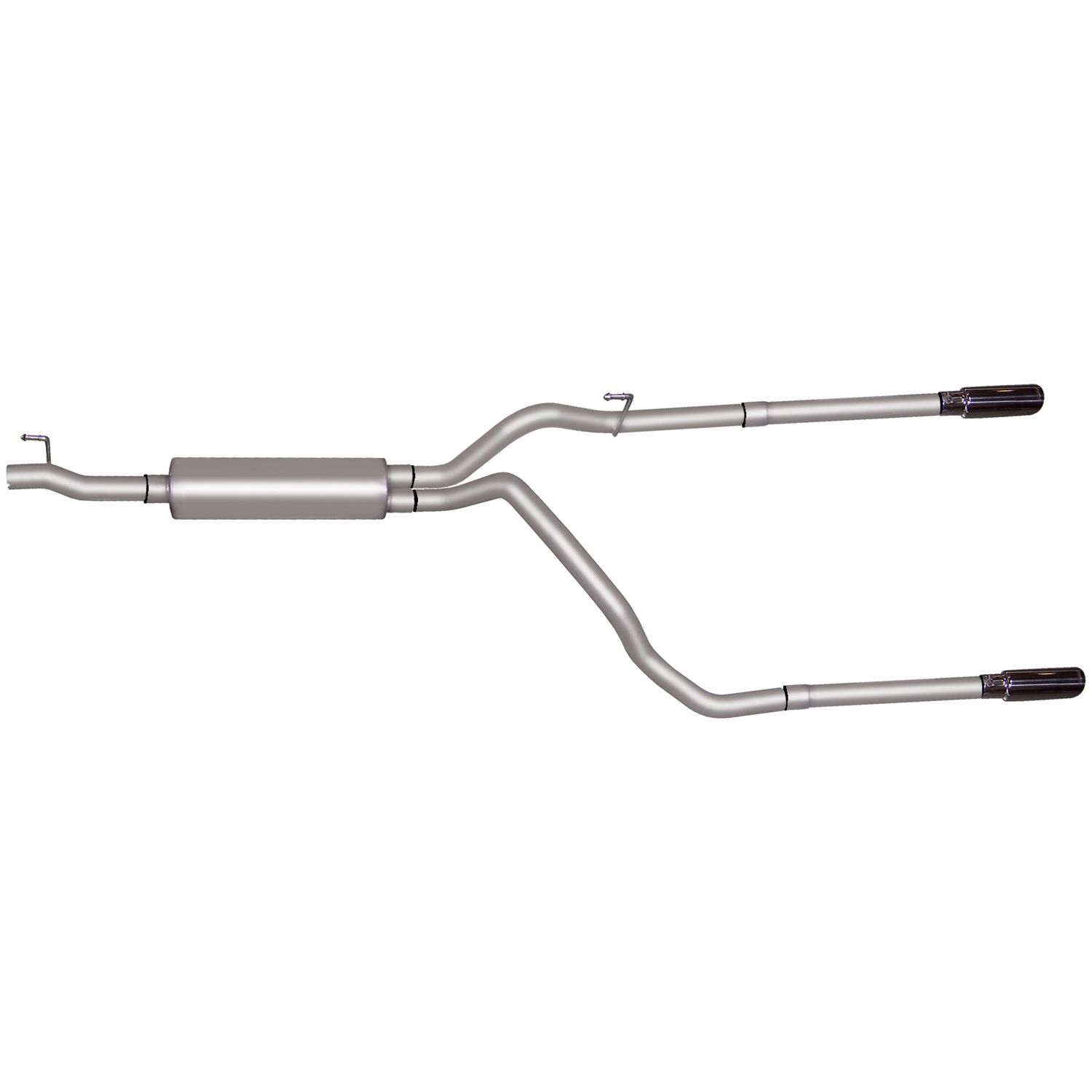 For the enthusiast who wants an awesome look and aggressive throaty sound this Dual Split Cat back exhaust is for you. Gibson Exhaust Systems decrease backpressure and produce more torque and increased horsepower. Typical gains average of 15-20 horsepower. Stainless dual Tip exit straight out the back. Works with most bumpers, roll pans and trailer hitches. Exhaust sound is louder under towing conditions. Hassle Free bolt- on installation. No welding required. Backed by a Lifetime Limited Warranty.