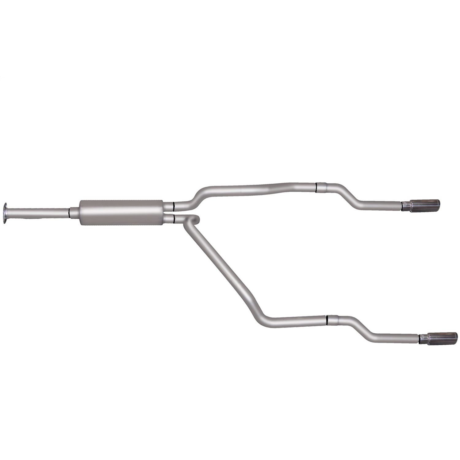 For the enthusiast who wants an awesome look and aggressive throaty sound this Dual Split Cat back exhaust is for you. Gibson Exhaust Systems decrease backpressure and produce more torque and increased horsepower. Typical gains average of 15-20 horsepower. Stainless dual Tip exit straight out the back. Works with most bumpers, roll pans and trailer hitches. Exhaust sound is louder under towing conditions. Hassle Free bolt- on installation. No welding required. Backed by a Lifetime Limited Warranty.