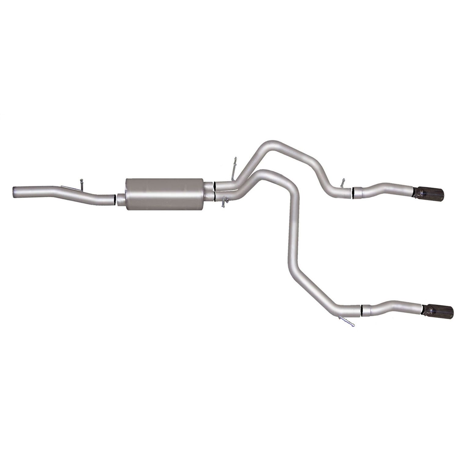 For the enthusiast who wants an awesome look and aggressive throaty sound this Dual Split Cat back exhaust is for you. Gibson Exhaust Systems decrease backpressure and produce more torque and increased horsepower. Typical gains average of 15-20 horsepower. Stainless dual Tip exit straight out the back. Works with most bumpers, roll pans and trailer hitches. Exhaust sound is louder under towing conditions. Hassle Free bolt- on installation. No welding required. Backed by a Lifetime Limited Warranty.