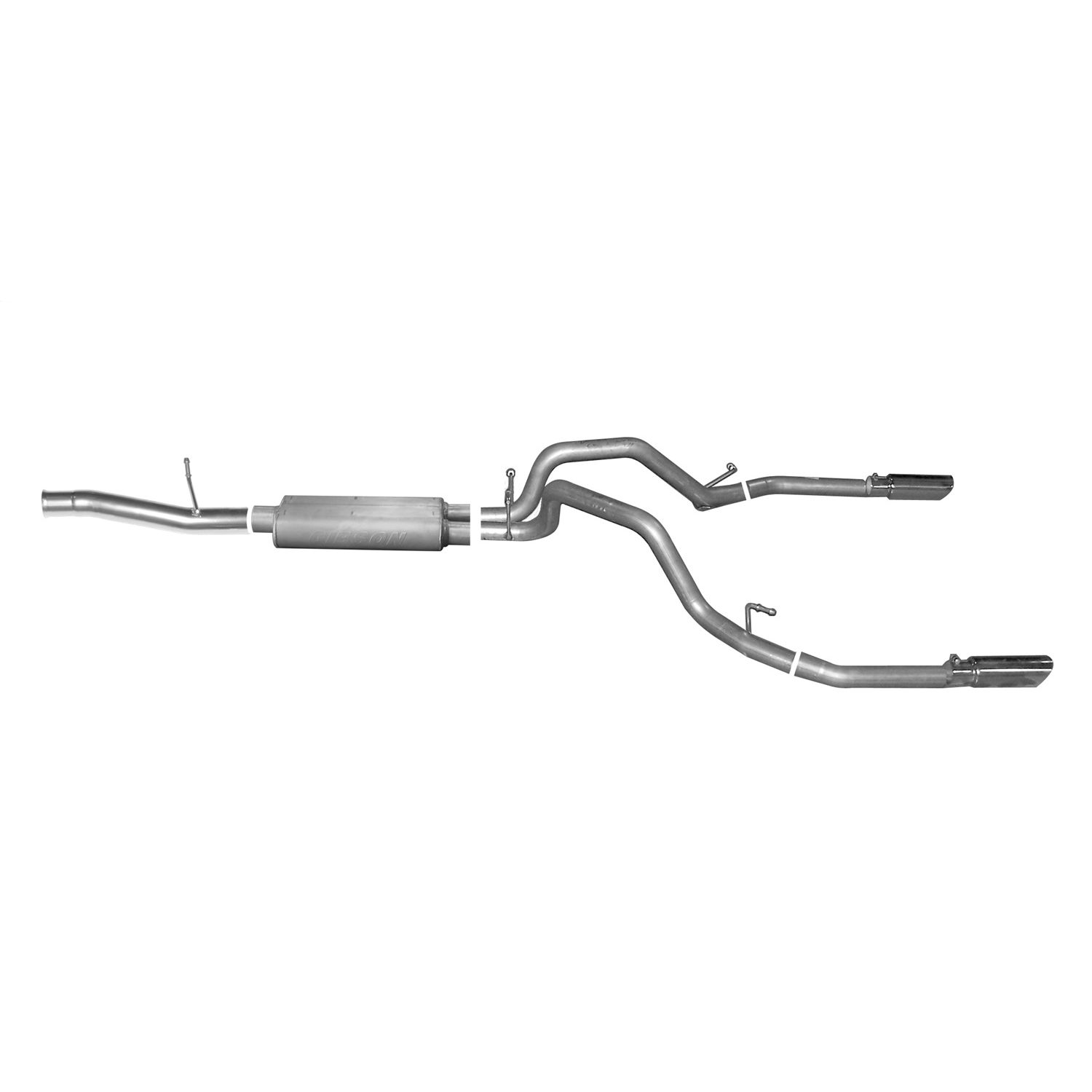 For the enthusiast who wants an awesome look and aggressive throaty sound this Dual Split Cat back exhaust is for you. Gibson Exhaust Systems decrease backpressure and produce more torque and increased horsepower. Typical gains average of 15-20 horsepower. Stainless dual Tip exit straight out the back. Works with most bumpers, roll pans and trailer hitches. Exhaust sound is louder under towing conditions. Hassle Free bolt- on installation. No welding required. Backed by a Lifetime Limited Warranty.