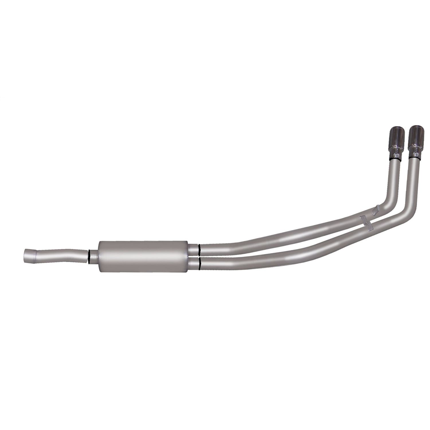 If youre looking to add a little style to your Truck or SUV and want to keep the exhaust from affecting your tow trailer, this Dual Cat back Exhaust System is for you, exiting behind the rear tire for a look that sets your vehicle apart on the street or in the dirt. Hassle free, bolt-on installation with professional looking results. No welding required. Backed by a Lifetime Limited Warranty. Gibson dual sport exhaust offers a powerful authoritative deep exhaust tone with no annoying noise inside the cab. Dyno tested to assure increased horsepower and produce more torque. Average horsepower gains are 10-15 and 15-20lb-ft of increase torque.