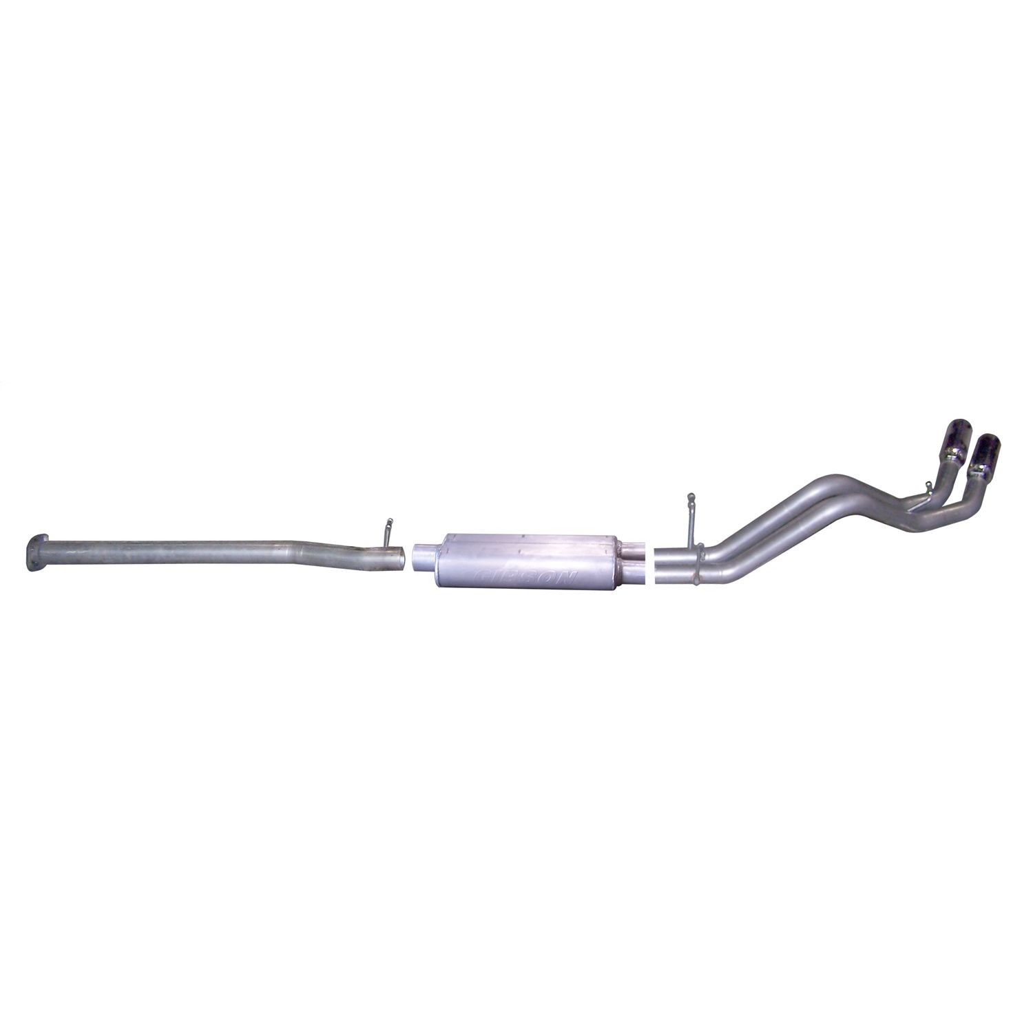 If youre looking to add a little style to your Truck or SUV and want to keep the exhaust from affecting your tow trailer, this Dual Cat back Exhaust System is for you, exiting behind the rear tire for a look that sets your vehicle apart on the street or in the dirt. Hassle free, bolt-on installation with professional looking results. No welding required. Backed by a Lifetime Limited Warranty. Gibson dual sport exhaust offers a powerful authoritative deep exhaust tone with no annoying noise inside the cab. Dyno tested to assure increased horsepower and produce more torque. Average horsepower gains are 10-15 and 15-20lb-ft of increase torque.