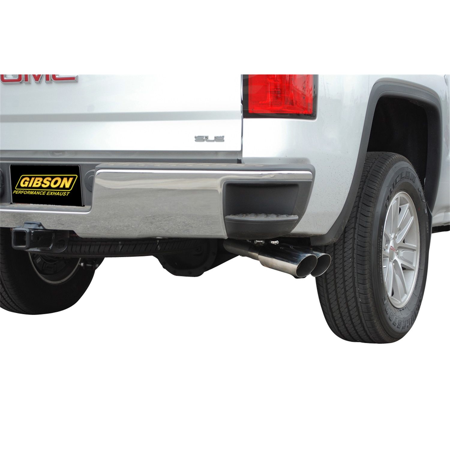 If youre looking to add a little style to your Truck or SUV and want to keep the exhaust from affecting your tow trailer, this Dual Cat back Exhaust System is for you, exiting behind the rear tire for a look that sets your vehicle apart on the street or in the dirt. Hassle free, bolt-on installation with professional looking results. No welding required. Backed by a Lifetime Limited Warranty. Gibson dual sport exhaust offers a powerful authoritative deep exhaust tone with no annoying noise inside the cab. Dyno tested to assure increased horsepower and produce more torque. Average horsepower gains are 18-20 and 15-20lb-ft of increase torque.