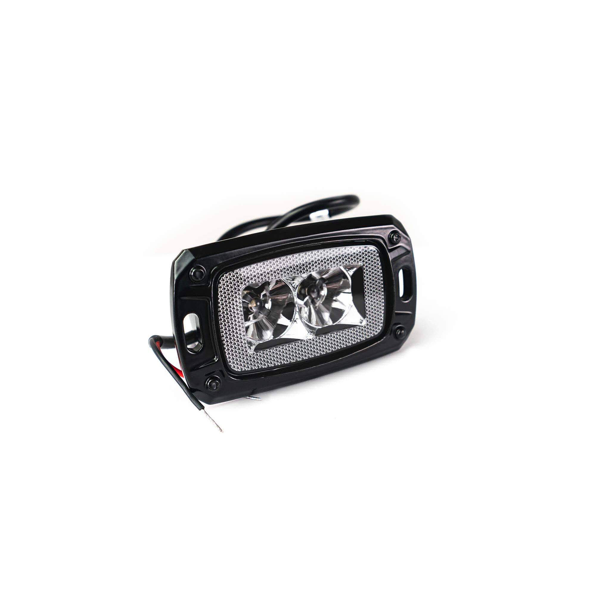 The DV8 AHJP-01 just makes sense. Whether you are off roading and in the need of some light during a late-night recovery or unloading your camping gear early in the morning, our hitch will offer the much needed light in the right place. Using the factory location, our 2 in. accessory hitch combines the need for a rear hitch and auxiliary lighting. Designed to work with all DV8 non-hitch equipped bumpers, the AHJP-01 comes with (2) 2 in. LEDs that are protected by the thick steel of the hitch.