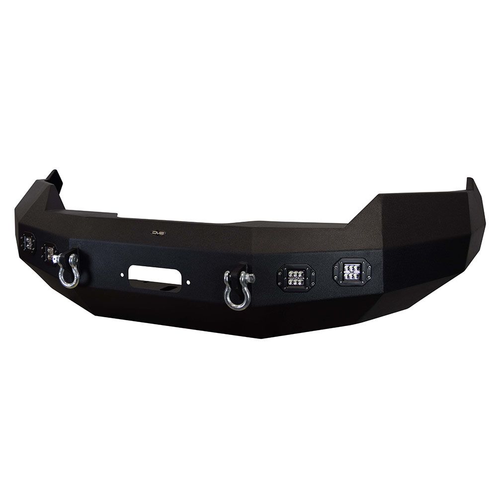DV8 Off Road truck bumpers are built with abuse in mind. DV8 bumpers are tested and proven in the desert, heavy off road recovery, and utility. DV8 bumpers are made from 3/16 cold rolled steel with 1/4 inch plus gusseting and mounting points. Every DV8 truck bumper comes with DV8's exclusive wrinkled 20 step powder coat. This finish looks great, is extremely durable, and is highly UV resistant. DV8 bumpers are 100 percent bolt on and include DV8's 2 year warranty against manufacturer defects. When you're tired of banging up your trucks thin fragile factory bumpers, DV8 has you covered. All of our front bumpers accommodate a 12,500lb winch, come with 7/8 inch D-ring shackles, and have holes for LED lighting. Lights Included.