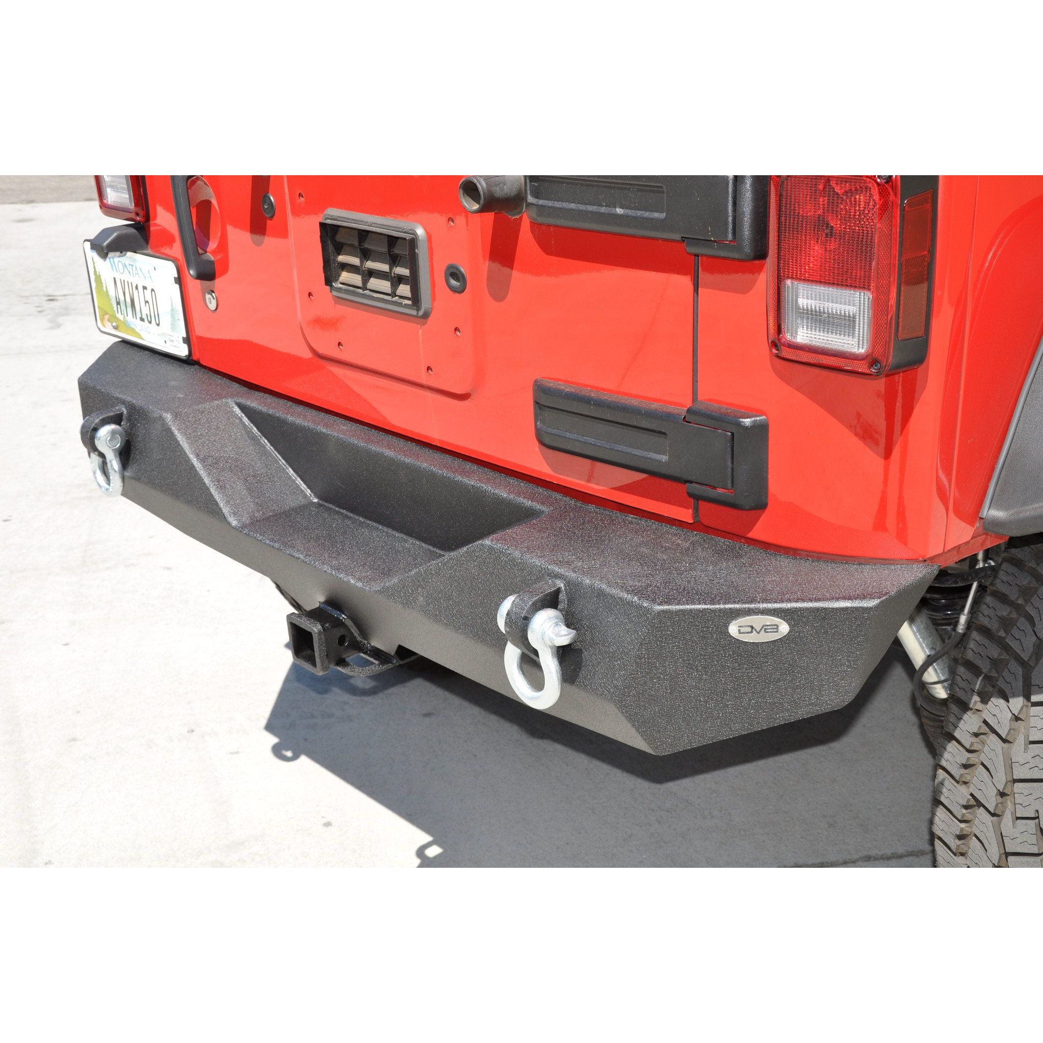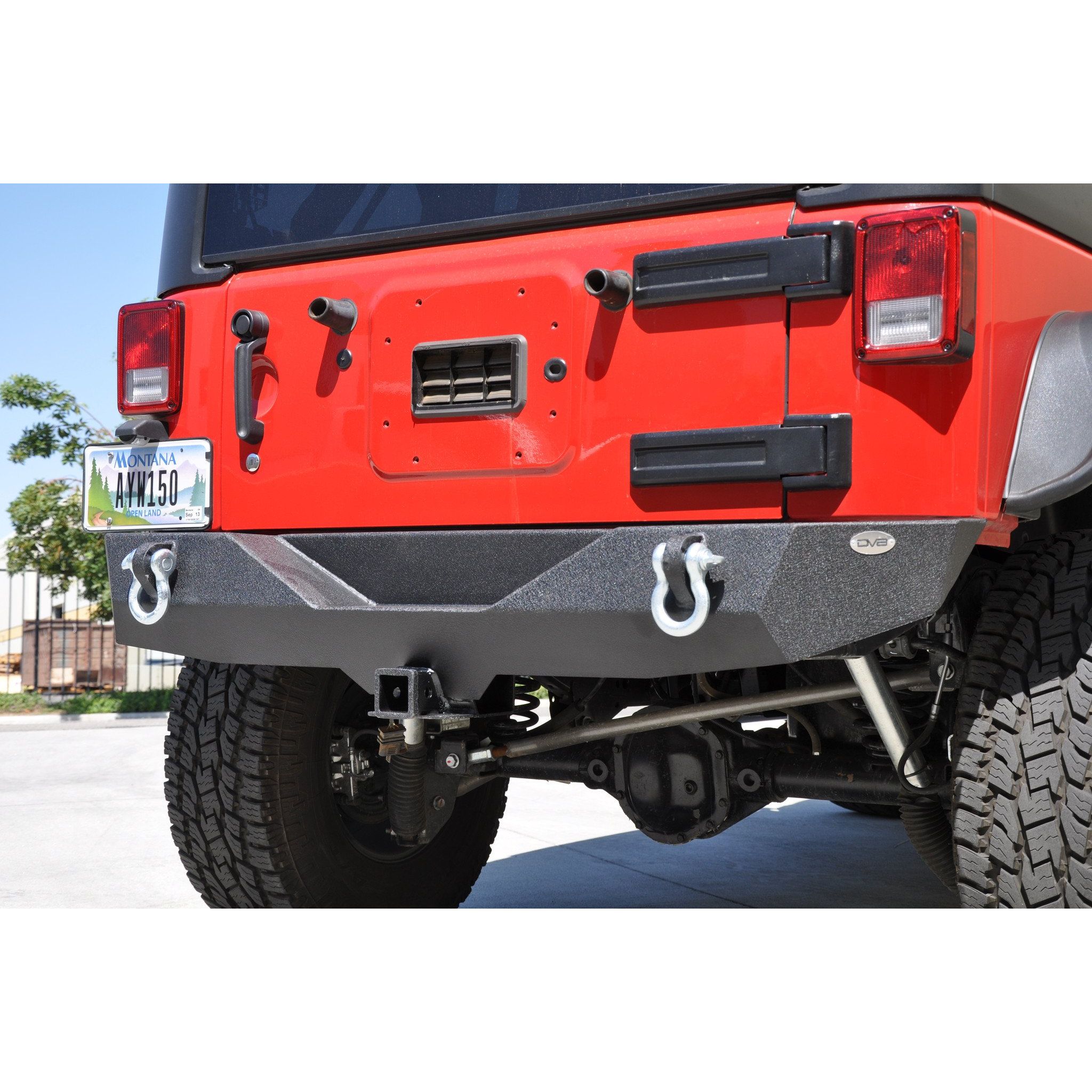 DV8 Offroad bumpers are all trail tested and proven designs! 3/16 inch and 1/4 inch cold rolled steel, .120 wall tubing, high degree angles and raised corners, Solid D-ring mounts w/ rings included. All bumpers come in textured black powder coating. Rear stubby Bumper and class 3 hitch. For 2007-2018 Jeep Wrangler all models. Easy installation, no modifications needed and hardware included. Features: Rear Stubby Bumper, .120 Wall Tubing, 3/16 inch and 1/4 inch Cold Rolled Steel, Solid D-ring Mounts with Rings Included, Textured Black Powdercoat, Hardware Included, Class 3 Hitch Included, Fits 2007-2018 Jeep Wrangler, Sold as Each, Lights Not Included.