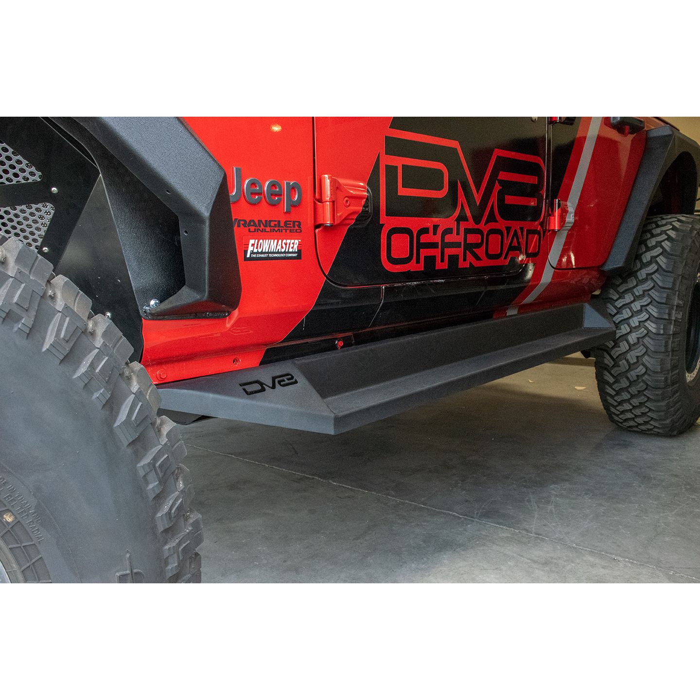 SRJL-04 2018 to present Jeep JL Plated Side Step/ Slider (4 Door Only). The DV8 Offroad SRJL-04 step sliders use a boxed in plated design that provides a rigid rock slider and the step will make struggling to get into your lifted JL a thing of the past. All while improving the looks and functionality of the Jeep. Easy installation, no modifications needed and utilizes factory hardware.