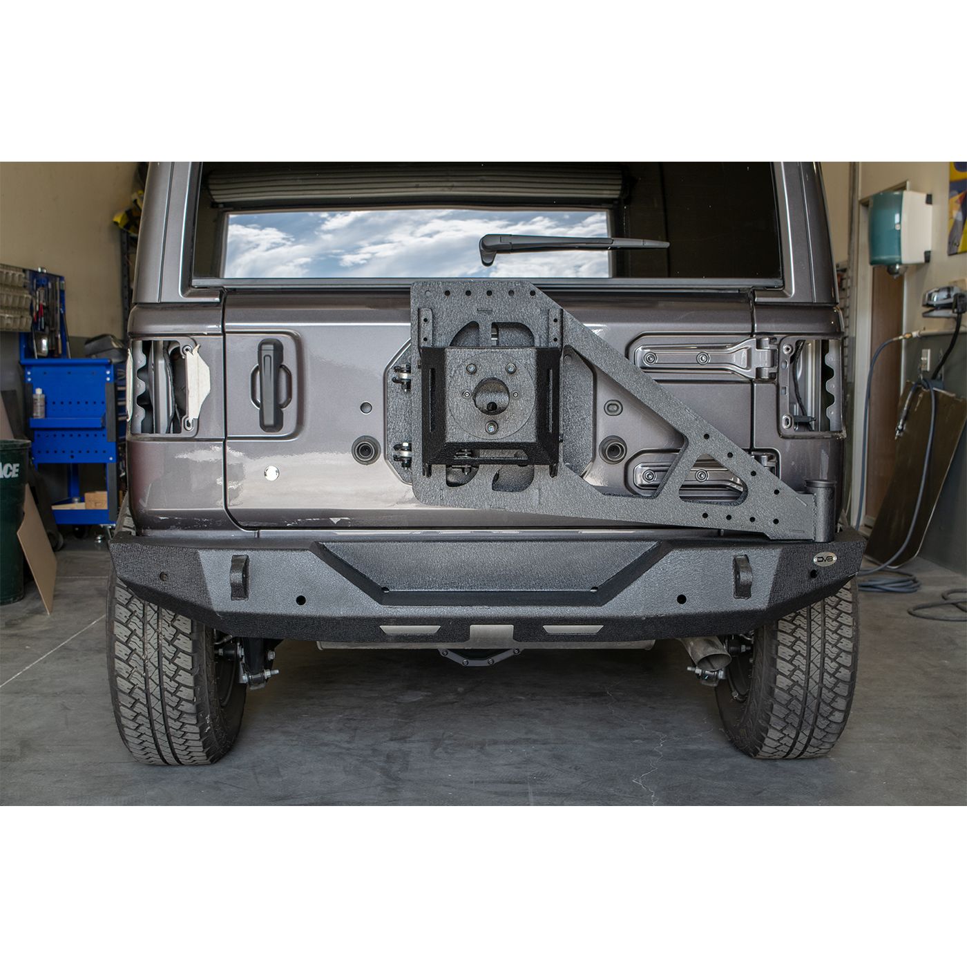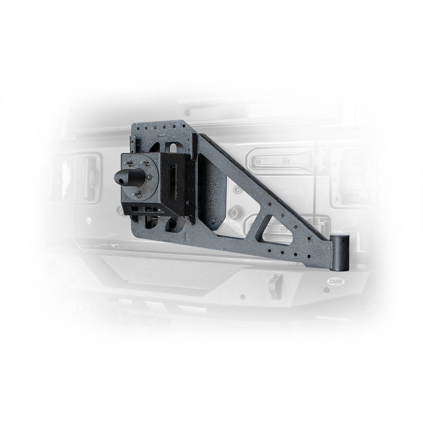 TCJL-06 2018 to present Jeep JL Bumper Mounted Tire Carrier. The DV8 Offroad TCJL-06 can be added to the RBJL-01 or RBJL-03 as a bumper mounted tire carrier. It attaches to the tailgate of the JL and operates just like the factory spare tire carrier but with the added support of being mounted to the frame. This tire carrier comes with everything needed to convert the bumper from standalone to a bumper with a tire carrier that can handle up to a 37 inch tire. Key Features: Replaces weak link on OEM spare tire mounting system, Accommodates up to a 37 inch tire and wheel combo, Retains easy access to rear of the Jeep, Allows for adjustability of how high the spare is mounted, Retains OEM taillight, Accommodates the factory backup camera.