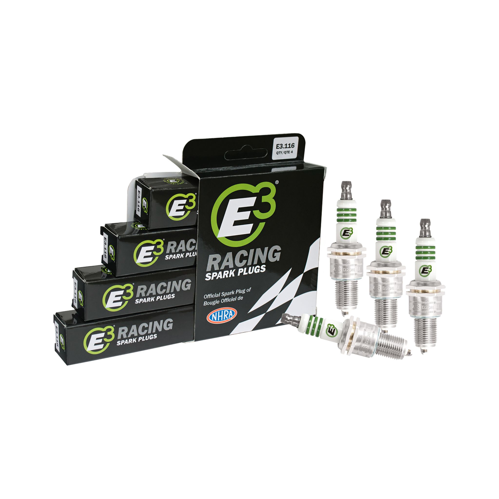 Features & Benefits: E3 Spark Plugs are the product of years of fundamental research in the combustion field. E3.116 has been built specifically for Nitro Funny Car and Top Fuel Dragsters, and can withstand the extreme conditions in these 10,000 horespower applications.