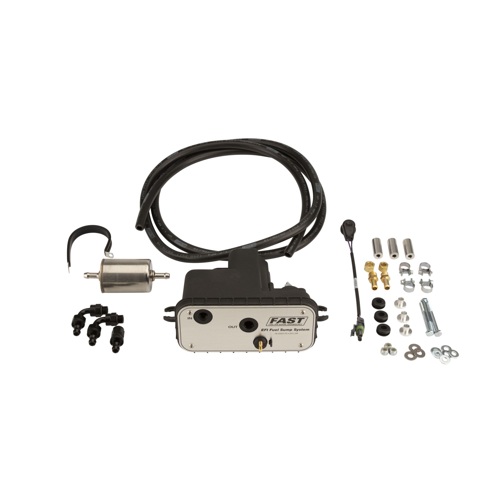The FAST EFI Sump Kit eliminates the major headache associated with retro-fit EFI installations: changing fuel pumps. The EFI Fuel Sump Kit includes an EFI pump, regulator, fuel cell and wiring required to prepare your fuel system for EFI.