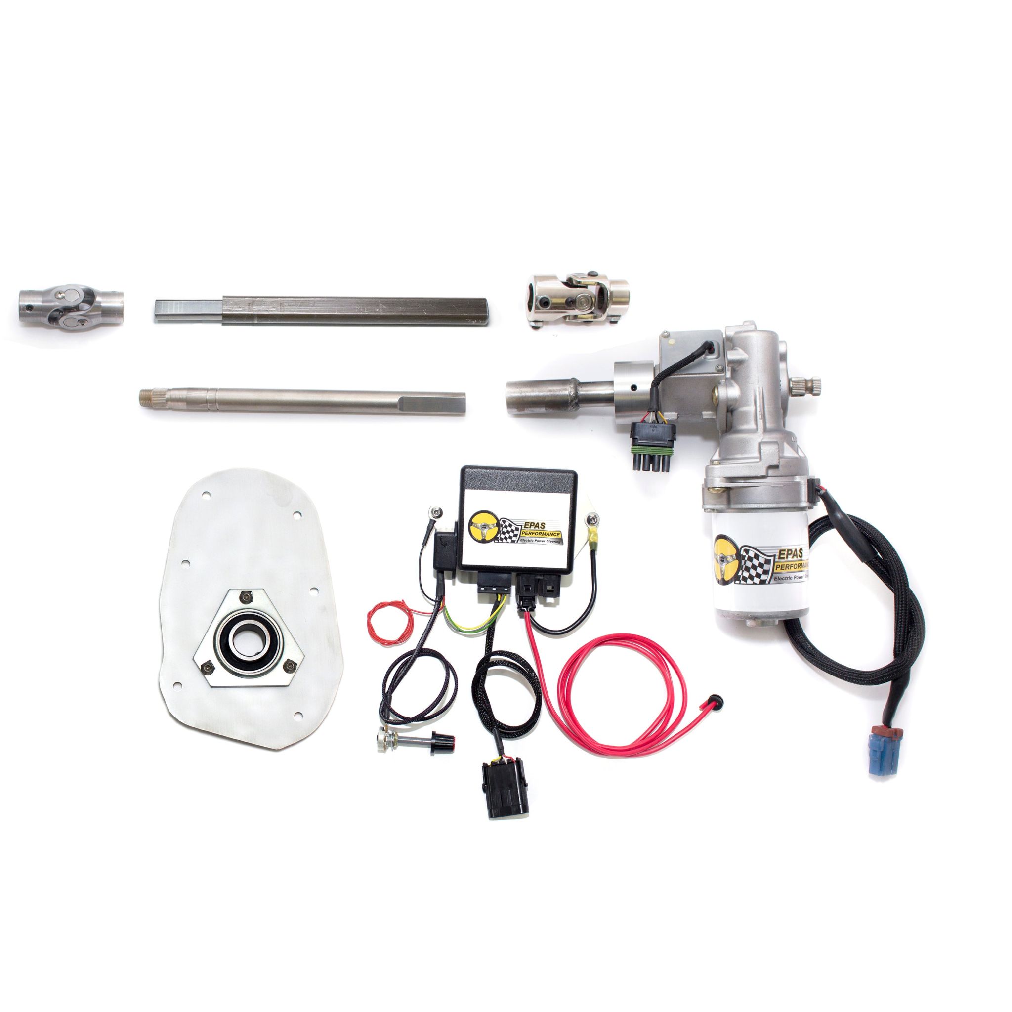 Kits available for floor shift models only. Please call for details on column shift vehicles. System can be Adapted to a rack or steering box: For Steering Rack equipped vehicles please contact EPAS Performance before placing your order as we will need additional information to complete your order. We will need to know whatsize shaft was used to get from the rack to the firewall in orderto attempt to adapt to it. The kit does not come with additional linkages to reach the rack, these must be purchased separately. How it works: The computer measures the amount of effort on the steering wheel and amplifies it with the aid of the electric motor. A potentiometer gives you control over the amount of assistance provided, allowing you to fine tune your EPAS experience. For example, you can have maximum power assist while on a parking lot, and less on the highway. The system is only active while turning. The installation of this system should be done by a professional mechanic or a very knowledgeable amateur.
