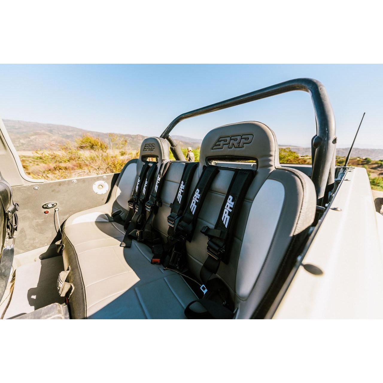 Build a custom PRP Elite Series Bench Seat for just about any vehicle! The Elite Series Bench features a modern style with more customization options, and large harness openings in the headrests allow for a better fit and easier adjustment. Built for off-road, this bench provides better comfort and containment than stock seats. The styling of this Elite Series bench matches the styling of our other Elite Series seats, so you can match the exact look of your front seats. Measure the widest point and PRP can build your bench seat anywhere from 36in to 53in wide. This Rear bench is 3" shorter depth than front seats to allow for more leg room (like in Jeeps). Perfect for the rear of most Jeep CJ's, TJ's, JK's as well as cars, buggies, and trucks. Each Bench seat is built with a reinforced tube frame and a suspension liner that absorbs the shocks from rough terrain. With thick foam padding provides excellent comfort and decreases the impact on the body, reducing the fatigue you feel after a long day in the dirt or dunes. Match the exact look of your PRP front seats and complete your interior! With over 60+ different colors and materials to choose from, you can customize the perfect seat for your ride. Extra options available include Front Goggle Pockets, Rear Storage Pockets, Water Paks, Heated Seats, Air Lumbar, and various Diamond Stitches. This Elite Series Bench features a design that perfectly matches the rest of PRP's Elite Series Front Seats so you can complete your entire interior. Pair this bench up with PRP's Podium Elite, Comp Elite, or Enduro Elite Recliner Seats. Bench Styles: Low Back – with No headrests (available on 36-39" Benches) High Back – with 2 fixed headrest (available on 40-53" Benches) Bench Measurements: Benches are available in custom widths from 36" to 53" That measurement is the total width of the bench at the widest point (outside arm to outside arm) 24" Tall (Low Back) or 31" Tall (High Back) x 23" Deep Mounting Area: Tabs are locat