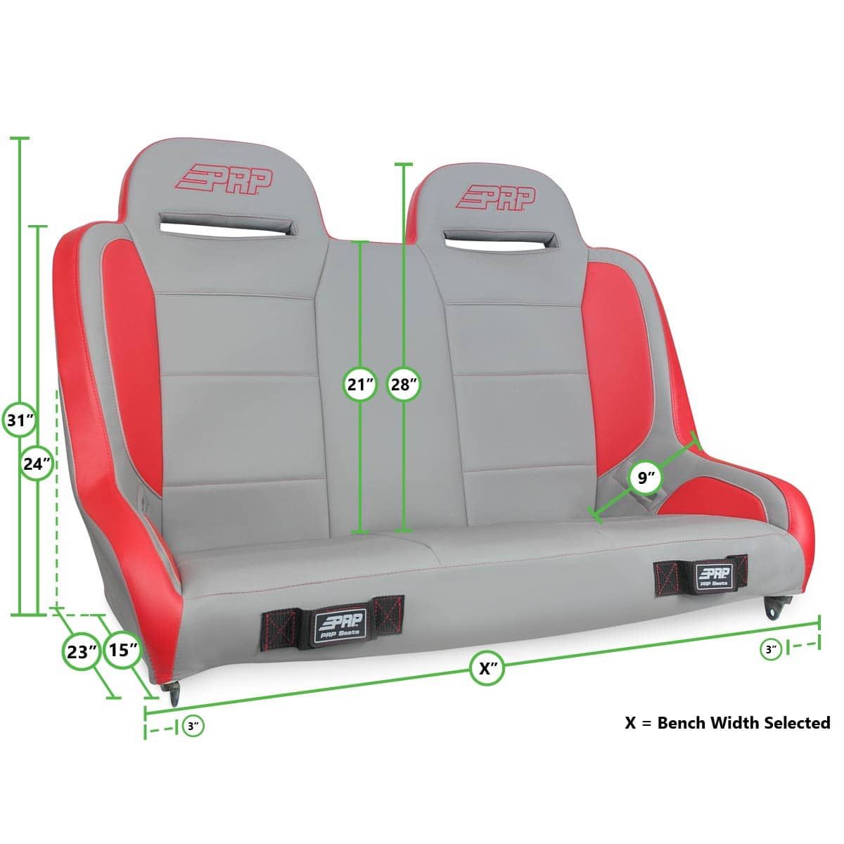 The Elite Series Bench features modern styling, and large harness openings that allow for a better fit and easier adjustment. Built for off-road, this bench provides better comfort and containment than stock. The styling of this Elite Series bench matches the styling of our other Elite Series seats, so you can match the exact look of your front seats. The bench can comfortably fit 2 adults, and is built 3" shorter than our standard to allow for more leg room (23" deep – front to back). This low-back version does not feature headrests. Available in 5 pre-designed color combinations. Red – Black, 201, 57, 210, 210; PRP Silver Out – Tweed in the Center, with Vinyl on the Arms and Back Built at 36" width to fit into Jeep Wrangler CJ7 or YJ. Attach to your vehicle by bolting to the pan with our Universal Angle Mounts – 3" Short. Fits in the back of your Jeep Wrangler CJ7 / YJ Measures 36” wide Mounting Area: 30? Wide x 15? Front to Back 24" Tall x 23” Deep