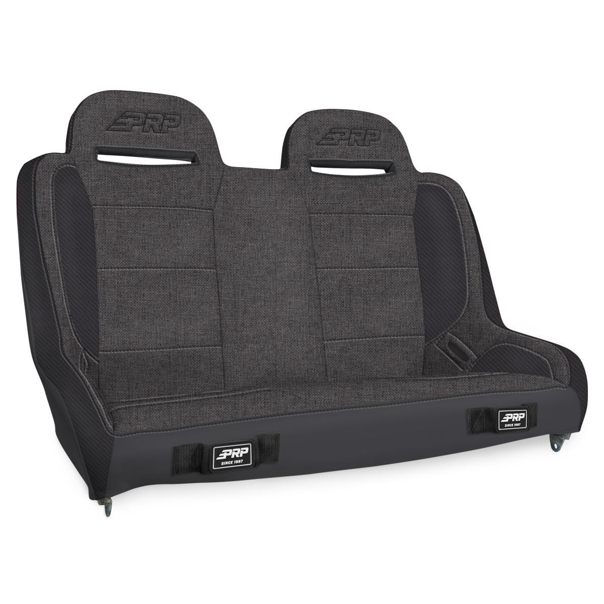 The Elite Series Bench features modern styling, and large harness openings that allow for a better fit and easier adjustment. Built for off-road, this bench provides better comfort and containment than stock. The styling of this Elite Series bench matches the styling of our other Elite Series seats, so you can match the exact look of your front seats. The bench can comfortably fit 2.5 adults, and is built 3" shorter than our standard to allow for more leg room (23" deep – front to back). This High-Back version features two headrests. Available in 5 pre-designed color combinations. All Grey – Black, 202, 54, 210, 210; PRP Black Out – Tweed in the Center, with Vinyl on the Arms and Back Built at 47" width to fit into Jeep Wrangler JKU/JLU. Attach to your vehicle with our Jeep JKU/JLU Rear Seat & Bench Mount. Fits in the back of your Jeep Wrangler JKU (2007-2018) or Jeep Wrangler JLU (2018+) Measures 47” wide Mounting Area: 41? Wide x 15? Front to Back 24" Tall x 23” Deep