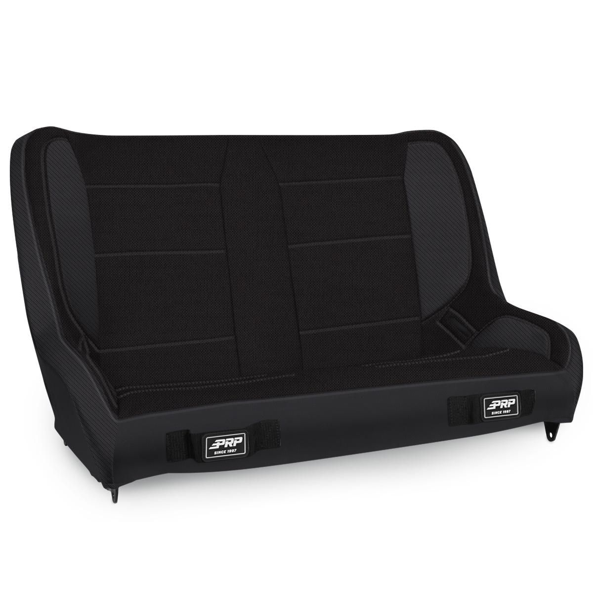 The Elite Series Bench features modern styling, and large harness openings that allow for a better fit and easier adjustment. Built for off-road, this bench provides better comfort and containment than stock. The styling of this Elite Series bench matches the styling of our other Elite Series seats, so you can match the exact look of your front seats. The bench can comfortably fit 2 adults, and is built 3" shorter than our standard to allow for more leg room (23" deep – front to back). This low-back version does not feature headrests. Available in 5 pre-designed color combinations. All Black – Black, 201, 50, 210, 210; PRP Silver Out – Tweed in the Center, with Vinyl on the Arms and Back Built at 39" width to fit into Jeep Wrangler TJ, LJ, or JK. Attach to your vehicle by bolting to the pan with our Universal Angle Mounts – 3" Short. Fits in the back of your Jeep Wrangler TJ/LJ (1997-2006), or JK (2007-2018) Measures 39” wide Mounting Area: 33? Wide x 15? Front to Back 24" Tall x 23” Deep