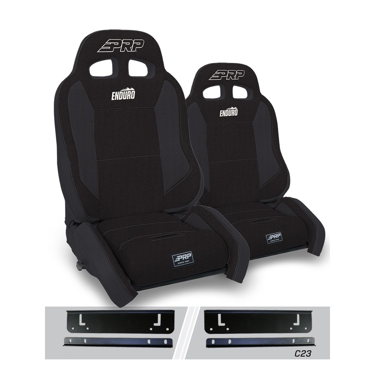 Featuring updated styling and a dual slot headrest for harnesses, the EnduroCrawl is designed to replace stock seats in your Jeep Wrangler TJ for a significant improvement to your enjoyment, comfort, and containment off-road. Featuring medium bolsters on the bottom and back of the seat, the EnduroCrawl provides the most containment for serious off-roading while retaining the ability to recline the seat. The bottom features higher sides to keep your legs locked in when bouncing around and the back lower section features a medium bolster at your sides that help to keep you secure. While the wider top section opens up, making it more comfortable for larger riders or those with broad shoulders. A removable, dual-layered seat cushion means the EnduroCrawl offers better leg support and extended comfort. The vinyl-coated nylon suspension liner and dual-density foam decrease the impact on the body and reduce body fatigue after a long day in the dirt or rock crawling. EnduoCrawl Reclining Suspension Seat is great for serious off-roaders who want to be held tight on the trails, with the additional comfort and adjustability of a reclining suspension seat. The EnduroCrawl reclines completely and inclines forward enough for access to the rear seats. The seat features Tweed Center, Vinyl Back and Vinyl Piping. This kit comes with 2x EnduroCrawl Seats, and the adapter mounts to fit into your Jeep Wrangler TJ (1997-2002). The adapter mounts bolt to your OEM sliders, allowing you to install the seat while retaining the ability to slide back and forth. Seat Dimensions: 33? Tall x 22? Wide x 26? Deep Fitment Jeep Wrangler TJ (1997-2002) Note: *Seat height is typically 1-2" higher than stock seats. Made for Off-Road use only with 4pt or 5pt off-road harnesses. Passenger Seats may not retain the ability to tumble. 3pt Seat Belts will need a Seat Belt Extension/Angle Bracket.