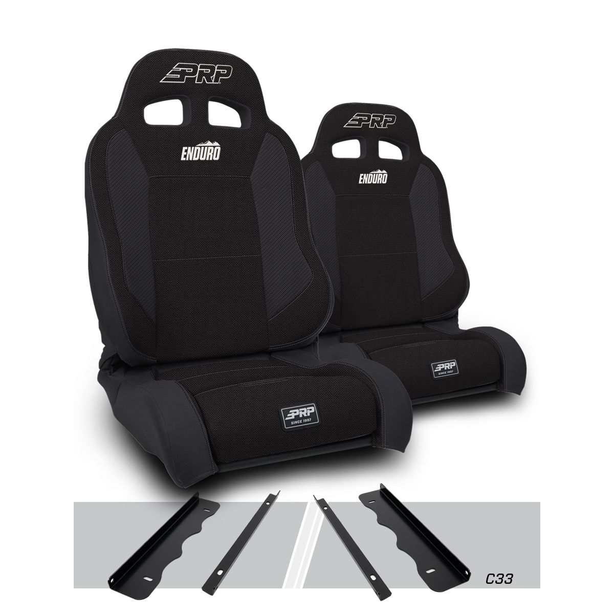 Getting out there and staying in your seat has never been easier or more comfortable than with the all new EnduroTrek! The EnduroTrek Reclining Suspension Seat features a redesigned back for greater containment at the torso. Medium bolsters at your sides keep you supported by holding your upper body tight through the rough stuff, while the upper section of the back opens up at the top, making it more comfortable for larger riders or those with broad shoulders. The seat bottom has low side bolsters for ease of entry and exit. The EnduroTrek Reclining Suspension Seat is a great seat if you do a mix of off-roading and grocery shopping! A removable, dual-layered seat cushion means the EnduroTrek Reclining Suspension Seat offers better leg support and extended comfort off-road. The vinyl-coated nylon suspension liner and dual-density foam decrease the impact on the body and reduce body fatigue after a long day in the dirt or rock crawling. The EnduroTrek reclines completely and inclines enough to allow access to the rear seats. The seat features Tweed Center, Vinyl Back and Vinyl Piping. This kit comes with 2x EnduroTrek Seats, and the adapter mounts to fit into your Jeep Cherokee XJ (1995-2001). The adapter mounts bolt to your OEM sliders, allowing you to install the seat while retaining the ability to slide back and forth. Seat Dimensions: 33? Tall x 22? Wide x 26? Deep Fitment Jeep Cherokee XJ (1995-2001) Note: *Seat height is typically 1-2" higher than stock seats. Made for Off-Road use only with 4pt or 5pt off-road harnesses. Passenger Seats may not retain the ability to tumble. 3pt Seat Belts will need a Seat Belt Extension/Angle Bracket.
