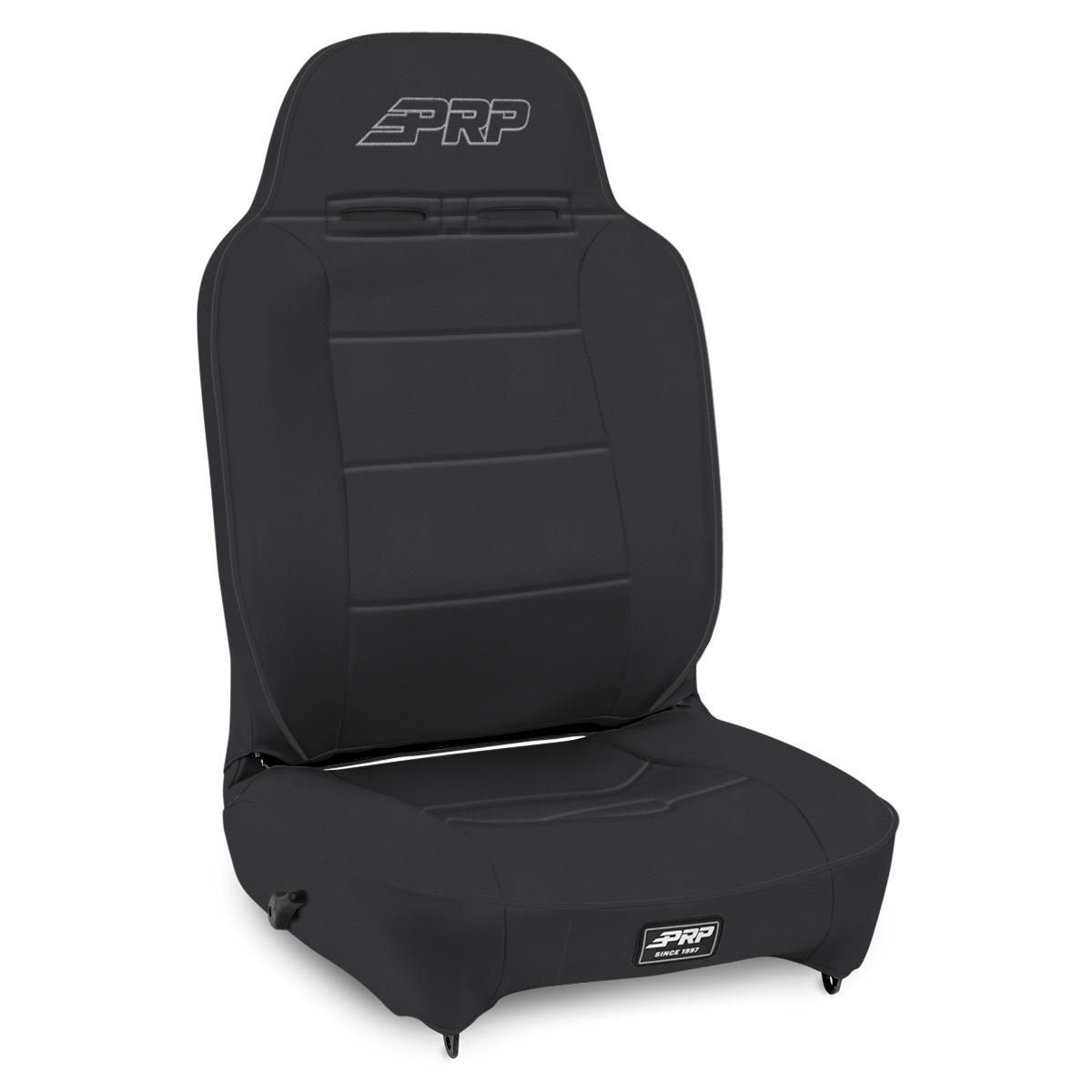 The Enduro Recliner was designed as a simple, replacement Jeep seat. Designed to replace stock Jeep Wrangler, Jeep XJ, or truck seats, the Enduro supplies additional comfort for taking your daily driver off-roading. The Enduro’s reclining mechanism can fold the seat forward to allow access to your back seats or recline all the way back for enjoying the stars. With a flat bottom cushion, the Enduro allows for maximum rider compatibility and also makes it easy to climb in and out of your rig. . Like all of PRP’s Classic Series seats, the Enduro can be built up to 4” taller and 2” wider (Be sure to measure your vehicle to see if you have enough room). As an alternative to the height options, you can change the classic hoop to an adjustable headrest or eliminate the headrest altogether for that vintage low back look. NOTE: Extra wide seats will not fit in Jeep models unless you have made significant changes to the interior. Please review your measurements closely.