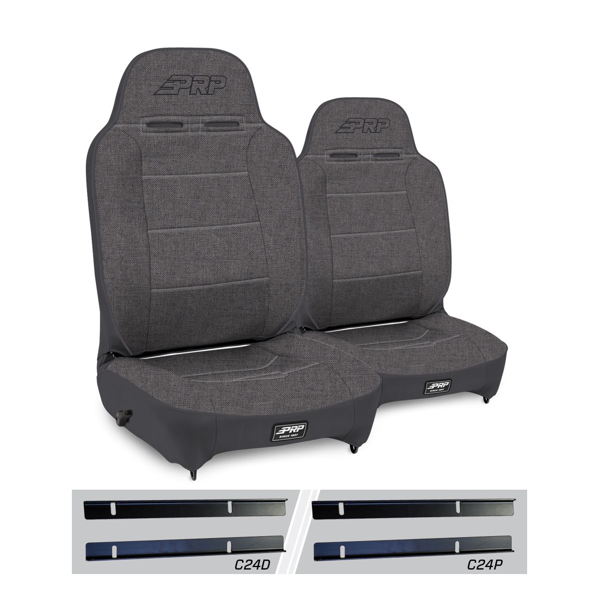 Add more comfort and containment to your Jeep Wrangler TJ. The Enduro Recliner was designed as a simple, classic style replacement Jeep seat. The seat supplies additional comfort for taking your daily driver off-roading. The Enduro’s reclining mechanism can fold the seat forward to allow access to your back seats or recline all the way back for enjoying the stars. With a flat bottom cushion, the Enduro allows for maximum rider compatibility and also makes it easy to climb in and out of your rig. The vinyl-coated nylon suspension liner and dual-density foam decrease the impact on the body, reducing the fatigue you feel after a long day in the dirt or rock crawling. The seat features Tweed Center, Vinyl Back and Vinyl Piping. This kit comes with 2x Enduro Seats, and the adapter mounts to fit into your Jeep Wrangler TJ (2003-2006). The adapter mounts bolt to your OEM sliders, allowing you to install the seat while retaining the ability to slide back and forth. Seat Dimensions: 33? Tall x 22? Wide x 26? Deep Fitment Jeep Wrangler TJ (2003-2006) Note: *Seat height is typically 1-2" higher than stock seats. Made for Off-Road use only with 4pt or 5pt off-road harnesses. Passenger Seats may not retain the ability to tumble. 3pt Seat Belts will need a Seat Belt Extension/Angle Bracket.