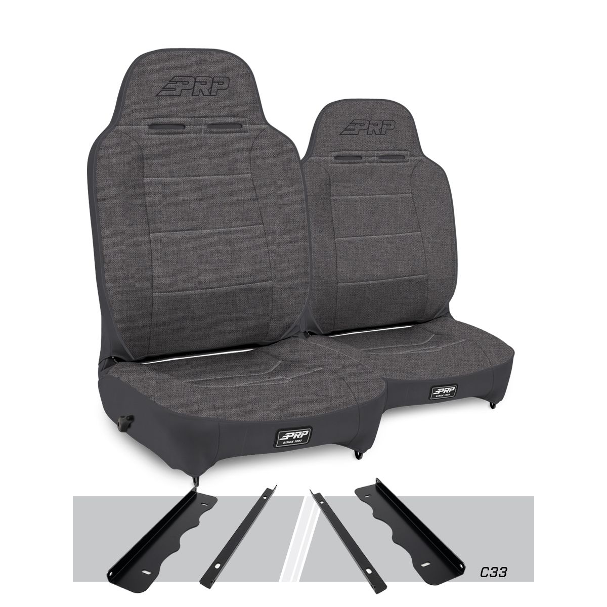Add more comfort and containment to your Jeep Cherokee XJ. The Enduro Recliner was designed as a simple, classic style replacement Jeep seat. The seat supplies additional comfort for taking your daily driver off-roading. The Enduro’s reclining mechanism can fold the seat forward to allow access to your back seats or recline all the way back for enjoying the stars. With a flat bottom cushion, the Enduro allows for maximum rider compatibility and also makes it easy to climb in and out of your rig. The vinyl-coated nylon suspension liner and dual-density foam decrease the impact on the body, reducing the fatigue you feel after a long day in the dirt or rock crawling. The seat features Tweed Center, Vinyl Back and Vinyl Piping. This kit comes with 2x Enduro Seats, and the adapter mounts to fit into your Jeep Cherokee XJ (1995-2001). The adapter mounts bolt to your OEM sliders, allowing you to install the seat while retaining the ability to slide back and forth. Seat Dimensions: 33? Tall x 22? Wide x 26? Deep Fitment Jeep Cherokee XJ (1995-2001) Note: *Seat height is typically 1-2" higher than stock seats. Made for Off-Road use only with 4pt or 5pt off-road harnesses. Passenger Seats may not retain the ability to tumble. 3pt Seat Belts will need a Seat Belt Extension/Angle Bracket.