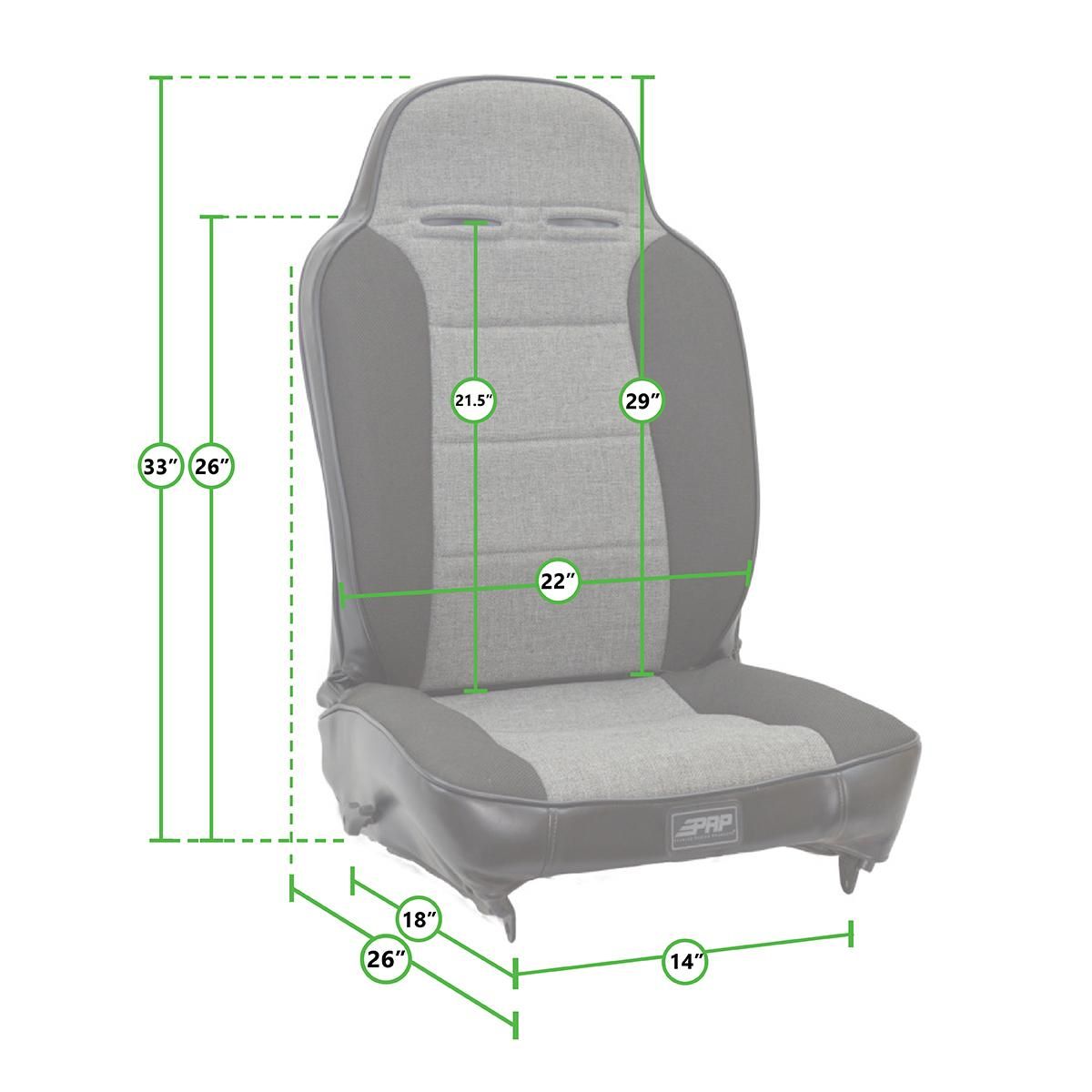 The Enduro Recliner was designed as a simple, replacement Jeep seat. Designed to replace stock Jeep Wrangler, Jeep XJ, or truck seats, the Enduro supplies additional comfort for taking your daily driver off-roading. The Enduro’s reclining mechanism can fold the seat forward to allow access to your back seats or recline all the way back for enjoying the stars. With a flat bottom cushion, the Enduro allows for maximum rider compatibility and also makes it easy to climb in and out of your rig. . Like all of PRP’s Classic Series seats, the Enduro can be built up to 4” taller and 2” wider (Be sure to measure your vehicle to see if you have enough room). As an alternative to the height options, you can change the classic hoop to an adjustable headrest or eliminate the headrest altogether for that vintage low back look. NOTE: Extra wide seats will not fit in Jeep models unless you have made significant changes to the interior. Please review your measurements closely.
