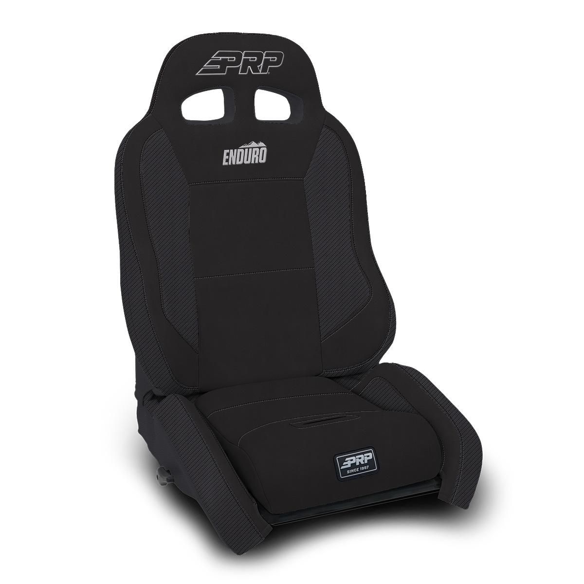 Add comfort and containment to your Jeep, Truck, or Buggy with the EnduroCrawl Reclining Suspension Seat from the Enduro Elite Series, the newest line of Reclining Suspension Seats from PRP. Featuring updated styling and a dual slot headrest for harnesses, the EnduroCrawl is designed to replace stock seats in a Jeep Wrangler, Jeep XJ, Ford Ranger, Trucks, or Buggy for a significant improvement to your enjoyment, comfort, and containment off-road. Featuring medium bolsters on the bottom and back of the seat, the EnduroCrawl provides the most containment for serious off-roading while retaining the ability to recline the seat. The bottom features higher sides to keep your legs locked in when bouncing around and the back lower section features a medium bolster at your sides that help to keep you secure. While the wider top section opens up, making it more comfortable for larger riders or those with broad shoulders. A removable, dual-layered seat cushion means the EnduroCrawl offers better leg support and extended comfort. The vinyl-coated nylon suspension liner and dual-density foam decrease the impact on the body and reduce body fatigue after a long day in the dirt or dunes. EnduoCrawl Reclining Suspension Seat is great for serious off-roaders who want to be held tight on the trails, with the additional comfort and adjustability of a reclining suspension seat. The EnduroCrawl reclines completely and inclines forward enough for access to the rear seats. The bottom tabs easily bolt to PRP’s series of mounts for Jeeps, Broncos, Ford Rangers, and more. The seat features Suede Center, Vinyl Back and Vinyl Bands.