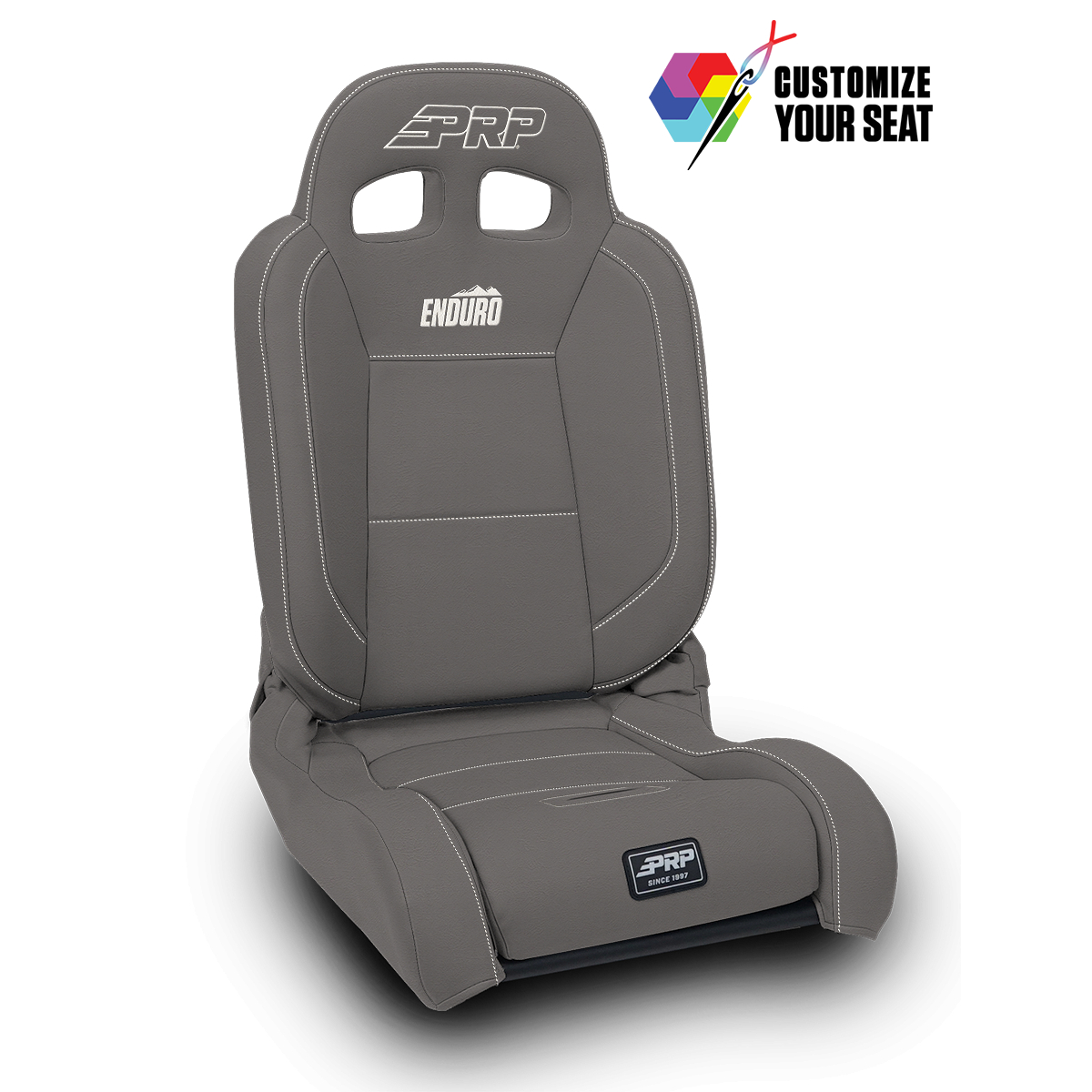 Add comfort and containment to your Jeep, Truck, or Buggy with the EnduroDaily Reclining Suspension Seat from the Enduro Elite Series, the newest line of Reclining Suspension Seats from PRP. Featuring modern styling and a dual slot headrest for harnesses, the EnduroDaily is designed to replace your stock seats in a Jeep Wrangler, Jeep XJ, Ford Ranger, Trucks, or Buggy for increased enjoyment, comfort, and containment off-road. The EnduroDaily Reclining Suspension Seat features Low Bolsters on the Back and Bottom offering a little more containment than most stock seats, but are still quick and easy to get in and out of. This seat is great if you use your vehicle as a daily driver most of the time, with occasional trips off-road. A removable, dual-layered seat cushion means the EnduroDaily offers better leg support and extended comfort. The vinyl-coated nylon suspension liner and dual-density foam decrease the impact on the body and reduce body fatigue after a long day on the road or while exploring off-road. The EnduroDaily reclines completely and inclines enough to allow access to the rear seats. The bottom tabs easily bolt to PRP’s series of mounts built for Jeeps, Broncos, Ford Rangers, and more. Design your own and Make it Yours! With over 60+ different colors and materials to choose from, you can customize the perfect seat for your ride. Extra available options include Front Goggle Pockets, Rear Storage Pockets, Water Paks, Heated Seats, Air Lumbar, and various Diamond Stitches. NOTE: Extra wide seats will not fit in most Jeep models unless you have made significant modifications to the interior. As always, please review your measurements closely.