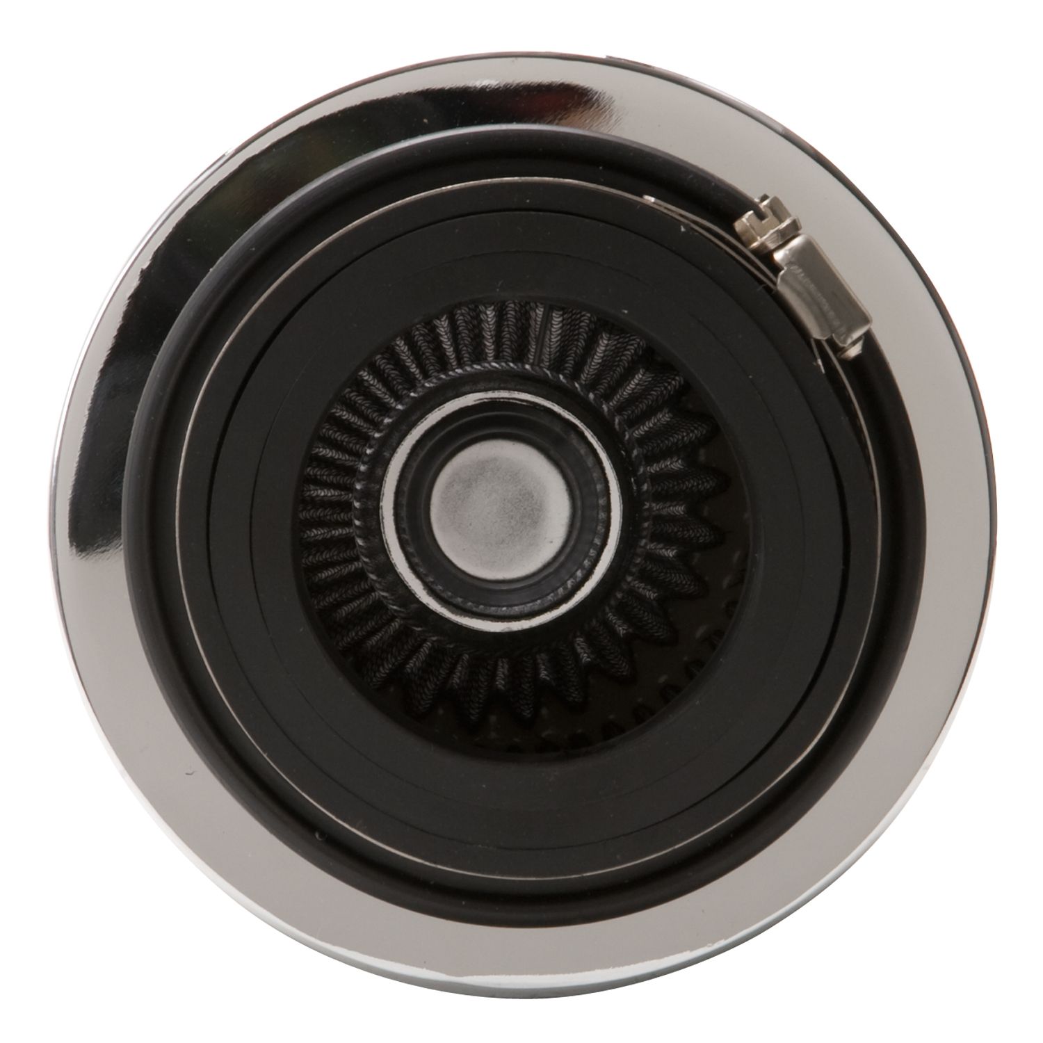 Edelbrock Universal Pro-Flo Conical Air Filter #43640 is an economical way to ensure your engine is getting clean air, without the expense of buying a new filter every few thousand miles. Its constructed for superior filtration and air flow performance. Features triple chrome plated trim for a show-quality look. Universal Fit Series is also designed with three inlet adapter rings for use on 3", 3.5" and 4" inlet tube systems. It also feature the Edelbrock exclusive Pro-Charge clean strip for easy maintenance. The Pro-Charge strip will let you know when it's time to clean your filter. Rated for use engines making less than 470 horsepower. Each filter comes pre-oiled and is washable and reusable. Use Edelbrock Pro-Charge Cleaning Kit #43600 to clean and re-oil.