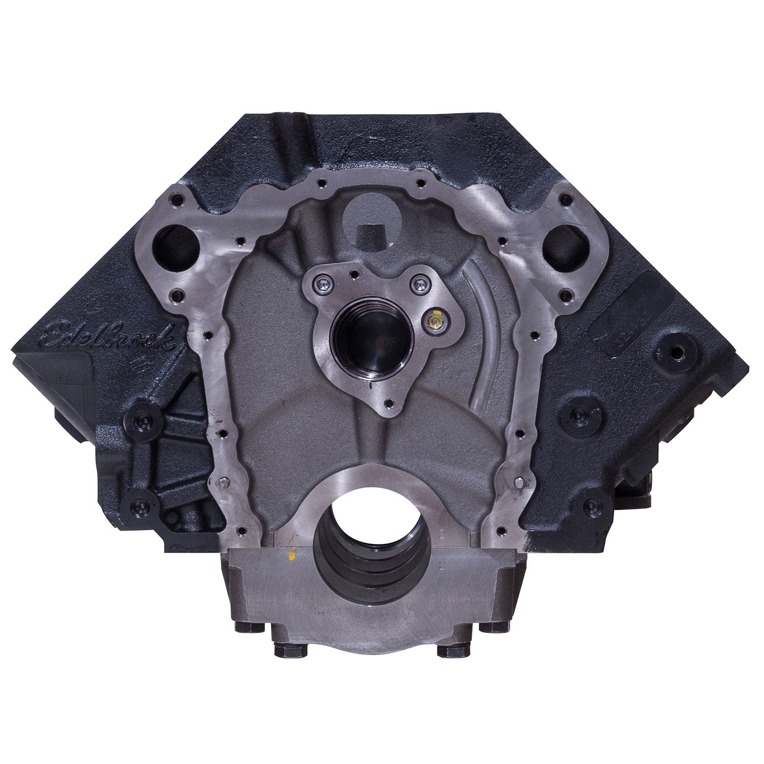 Edelbrock part #450000 Big-Block Chevy Cast Iron Engine Block is cast and machined in the U.S.A. and made to last. Being that Edelbrock engine blocks are cast and machined in the U.S.A. allows us to precision machine them to our very own specifications. Engine block part #450000 is the perfect starting point for any Big-Block Chevy high performance engine build especially when used with an Edelbrock Total Power Package. When it comes to starting with the right base for your engine build.. make sure to choose the one made right here in the U.S.A. Edelbrock part #450000 Big-Block Chevy Cast Iron Engine Block is manufactured to the following specifications: – Block Type: Big-Block Chevy – Block Material: Cast Iron – Cylinder Wall: Siamese – Supplied Bore Size: 4.500" – Supplied Stroke Clearance: 4.500" – Max Recommended Bore: 4.600" – Max Recommended Stroke: 4.500" – Max Recommended C.I.: 598 – Deck Height: 9.800" – Cam Bearing Bore ID: 2.120" – Camshaft Position: Standard BBC – Head Bolt Pattern: Standard BBC – Inside Head Stud Bosses: Yes – Lifter Bores: Standard BBC – Main Bearing Size: Standard BBC – Main Bearing Bore: 2.9375" – Main Caps: 4 Bolt Splayed – Oil System: Main Priority – Oil Cooler Holes: Integral to Block – Rear Main Seal: 2-Piece – Hydraulic Roller Provisions: Accepts- Gen V, VI Link Bar – Stud and Bolt Holes: Blind Tapped – Tapped Holes: Standard Thread & Pitch – Timing Chain/Gears: Standard BBC Gen IV, V, VI – Timing Cover: Accepts- Mark IV 10 Bolt – Fuel Pump Boss: Yes – Starter: Standard Location – Clutch Linkage Boss: Yes