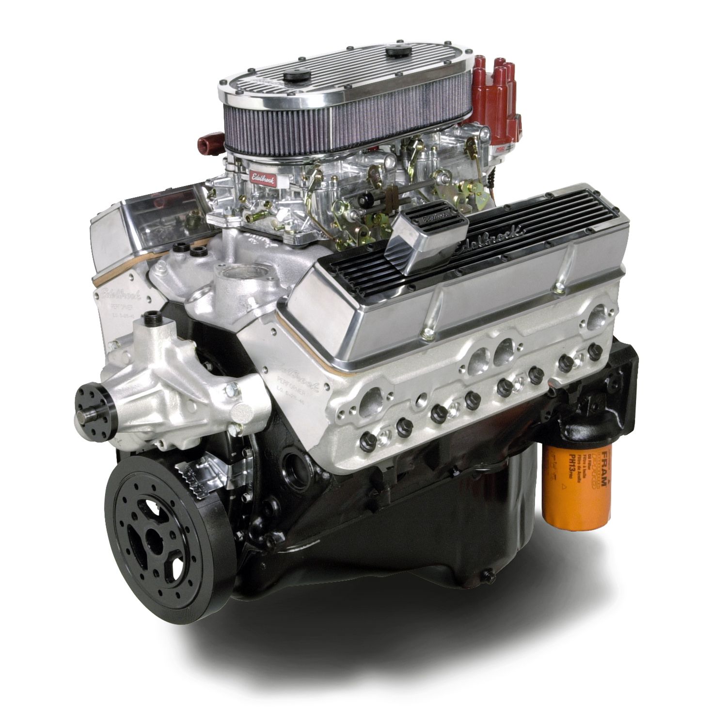 Edelbrock part #45010 Performer Dual-Quad engine is 100% brand new and includes a 4-bolt main block, Edelbrock Performer heads two 500 cfm carbs