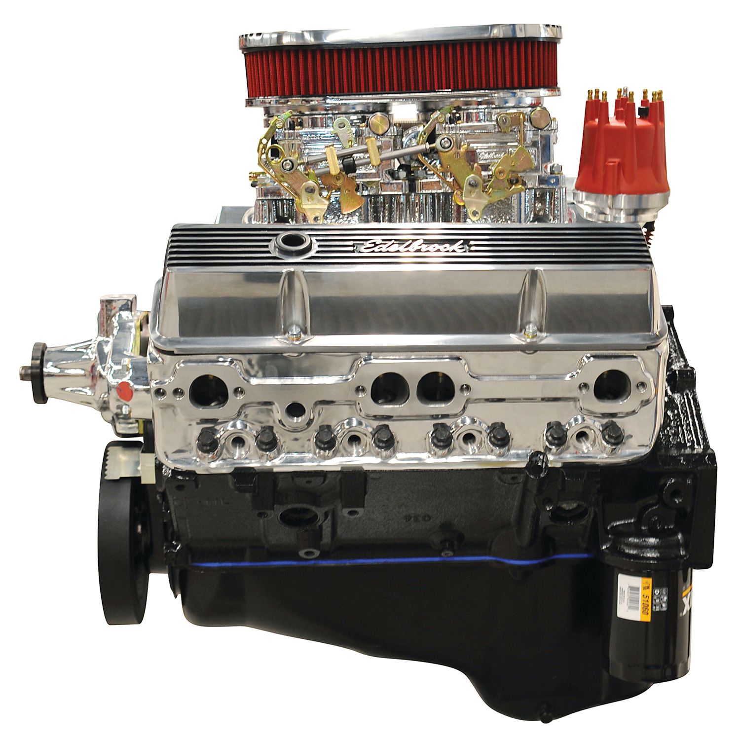 Edelbrock part #45014 Performer Dual-Quad engine 9.0:1 is 100% brand new and includes a 4-bolt main block, Edelbrock Performer heads
