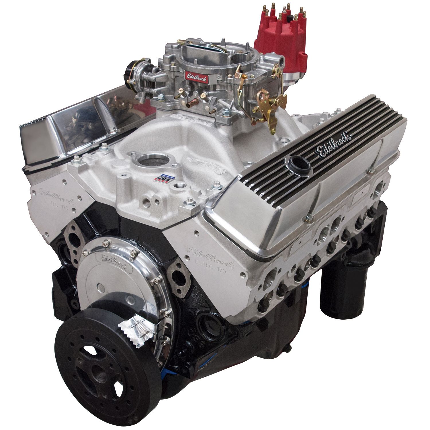 Edelbrock part #46400 Performer Hi-Torq small-block Chevy 350 crate engine offers the best of quality and performance with 379 HP & 384 ft/lbs of torque right out of the crate.