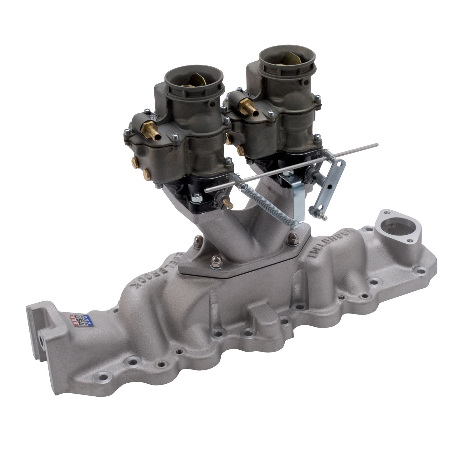The Edelbrock #2012 Vintage Manifold and Carb kit is designed for 1938-48 Ford Flathead applications. Due to popular demand, we are now offering street rodders the ultimate solution for adding dual, triple or six deuce Edelbrock power! Edelbrock Vintage Manifold and Carb kits offer you the core components you need to install an Edelbrock multiple carburetor and intake manifold setup on your application. All in one box. They include a new Edelbrock intake manifold with two, three or six of our new Edelbrock 94 carburetors. To make the installation simple, these kits include straight throttle linkage and triple-deuce kits include our exclusive progressive throttle linkage #1033 originally designed by Vic Edelbrock Sr. back in the late 1950's for small-block Chevy. All kits also include high-quality Edelbrock gaskets, carb studs and all of the necessary hardware for a hassle free installation. Complete your multi-carb setup installation with the Edelbrock Mini Fuel Distribution Block Kit #1281 or Fuel Log Kit #1283, #1284, #1288, or #1287. Edelbrock Fuel Kits provide everything you would need to supply fuel to your intake manifold and carb setup. They feature high quality polished aluminum mini fuel block or extruded aluminum, classic black neoprene hose, fittings and installation hardware. Together with our Manifold and Carb Kits, you get bolt-on Edelbrock performance and classic looks.