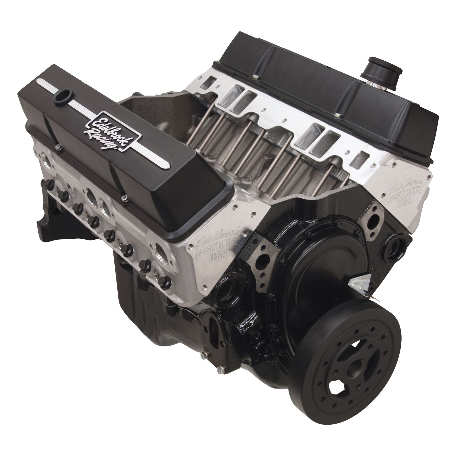 Edelbrock part #45070 E-Street Long-Block is affordably priced for any builder who already owns an Edelbrock intake manifold and carb and wants to step up to a crate engine on a budget