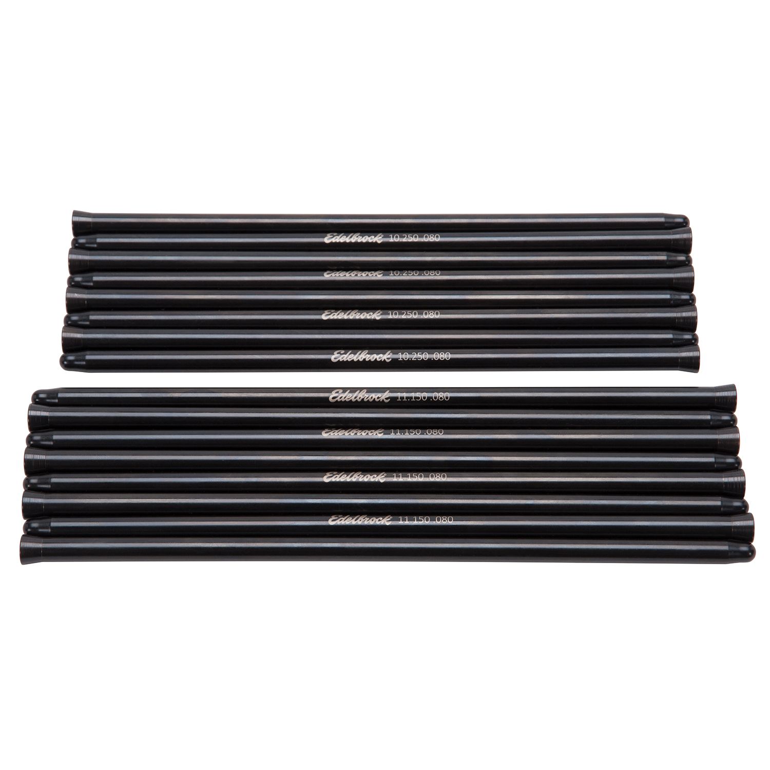 Edelbrock part #9618 Pushrods are designed for Chrysler 426-572 Gen II Hemi V-8 engine applications. These one-piece pushrods are manufactured from high quality 4130 Chromoly steel tubing that has been surface hardened for maximum durability. They have precise formed wedged ends for a high quality fit with the cup seats. A black oxide finish is added for corrosion resistance. Pushrod Specifications: – Outside Diameter: 3/8" – Length: 10.250"/11.150"