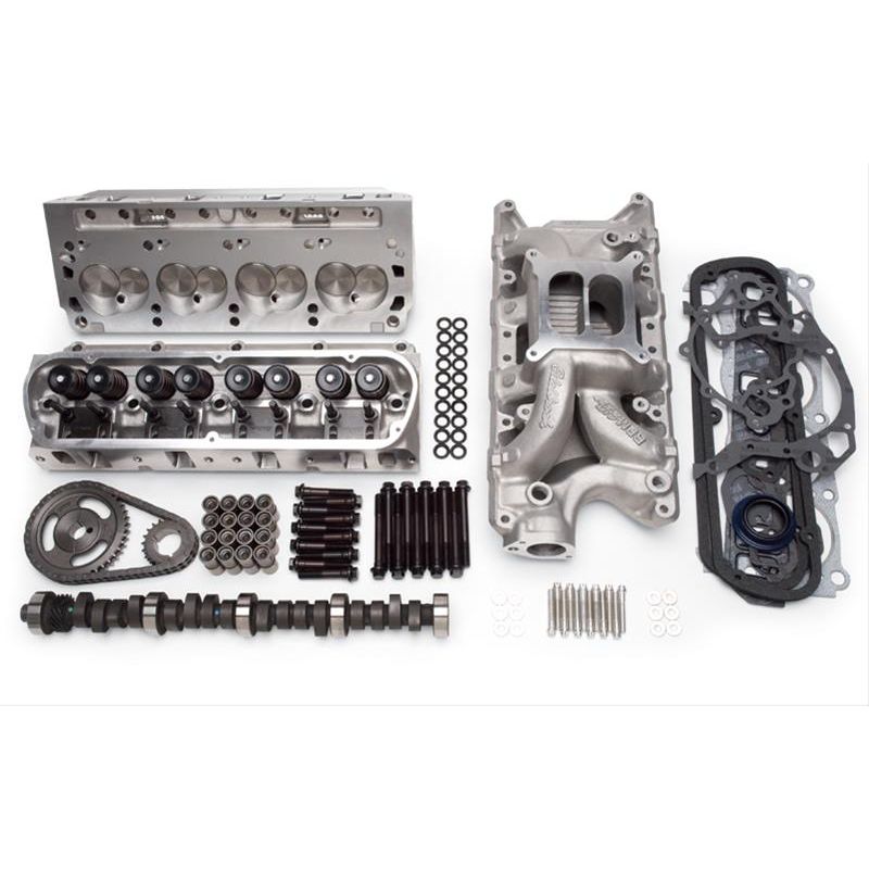 Edelbrock part #2043 Performer RPM Top End Kit is designed for 1981 and earlier Small-Block Ford 331-363 V-8 Engines. This Top End Kit produced 438 HP & 413 TQ on a 347 c.i.d. Small-Block Ford with 9.5:1 compression. The kit delivers improved performance in street applications from 1,500 to 6,500 rpm range. This kit includes RPM Air-Gap intake manifold, RPM cylinder heads, pushrods and Rollin' Thunder Hydraulic Roller camshaft, timing chain, complete bolt kits and an Edelbrock gasket set. To get great performance out of any engine, all of the components must work together. For over 30 years, the Edelbrock Total Power Package system has solved the parts matching puzzle for many street performance enthusiasts. With the introduction our Power Package Top End Kits, now you can get the best Edelbrock performance in-one-box, under one part number with "no guesswork" involved.
