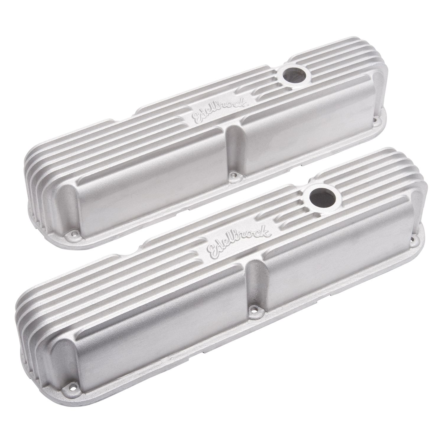 Edelbrock part #41769 Classic Series Valve Covers are designed for Chrysler Small-Block LA 318-340-360 applications and have a Satin finish. Edelbrock first made these aluminum valve covers in the late '50s and they're still a classic. Made of heavy-gauge sand-cast aluminum, Overall height is measured from base to top at the highest point. Edelbrock classic valve covers can be machined to accept breathers if desired.
