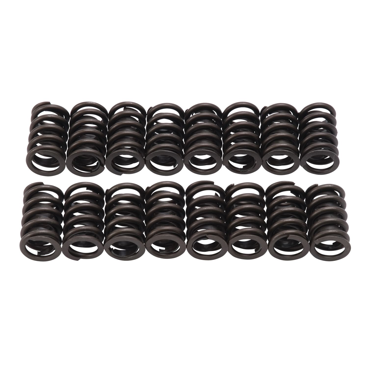 Edelbrock part #5824 Sure Seat Valve Spring Kit are replacement valve springs for early E-Street Cylinder heads with 1.250" dia. Valve springs. Made of highest quality spring wire and precision wound to close tolerances. For camshaft warranty compliance, use only the springs recommended by Edelbrock for each camshaft application. Set of 16. Valve Spring Specifications: Type: Non-Rotator Seat Pressure: 90 lbs. Installed Height: 1.750" Outside diameter: 1.250" Open Pressure: 325 lbs. @ 0.550" Coil Bind: 1.150"