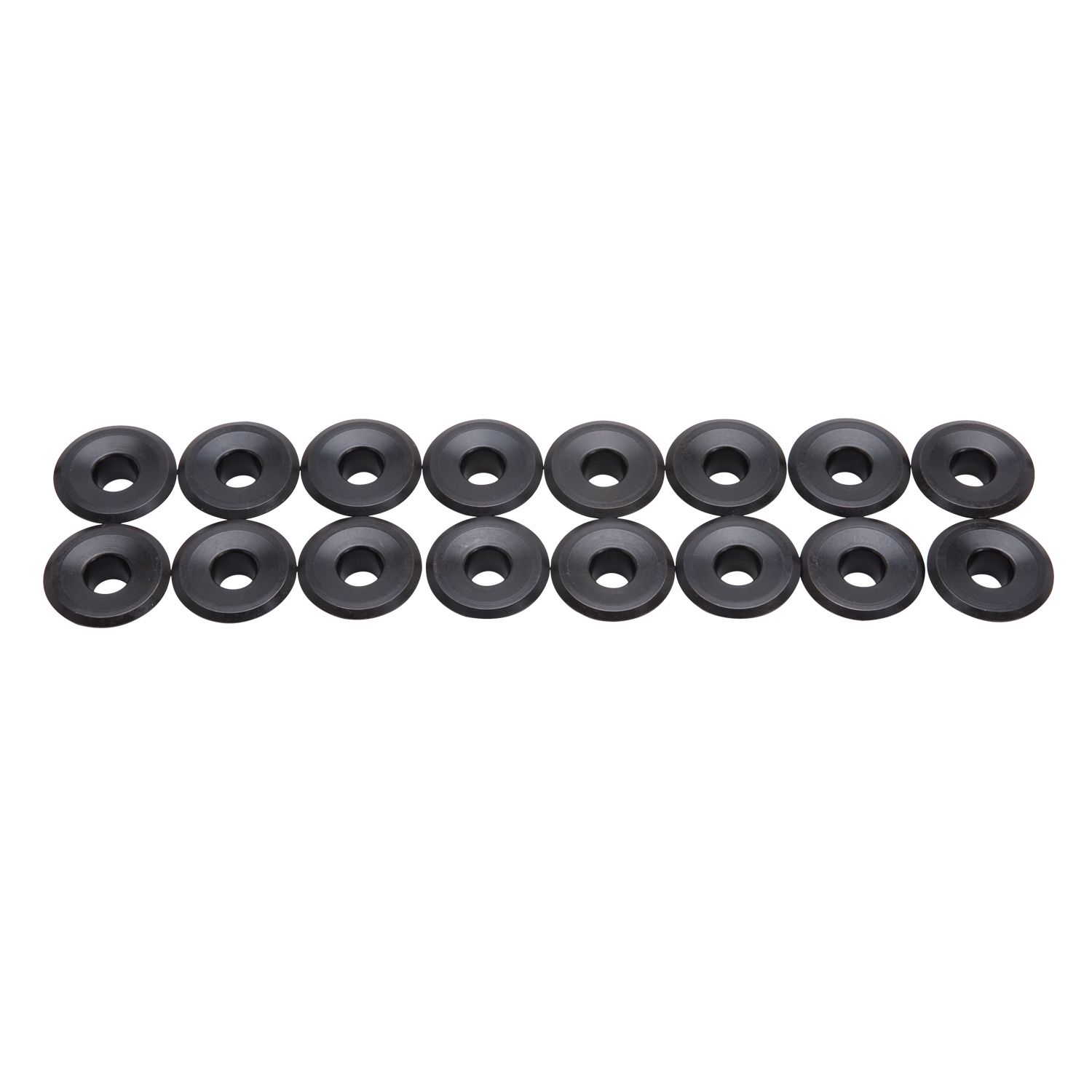 These valve spring retainers are made from 4140L steel and have an 1.375 outer diameter with an 1.070 spring diameter. Retainers are tapered 7 Deg for 11/32" locks and are finished with a black oxide coating. Kit comes in a set of 16.